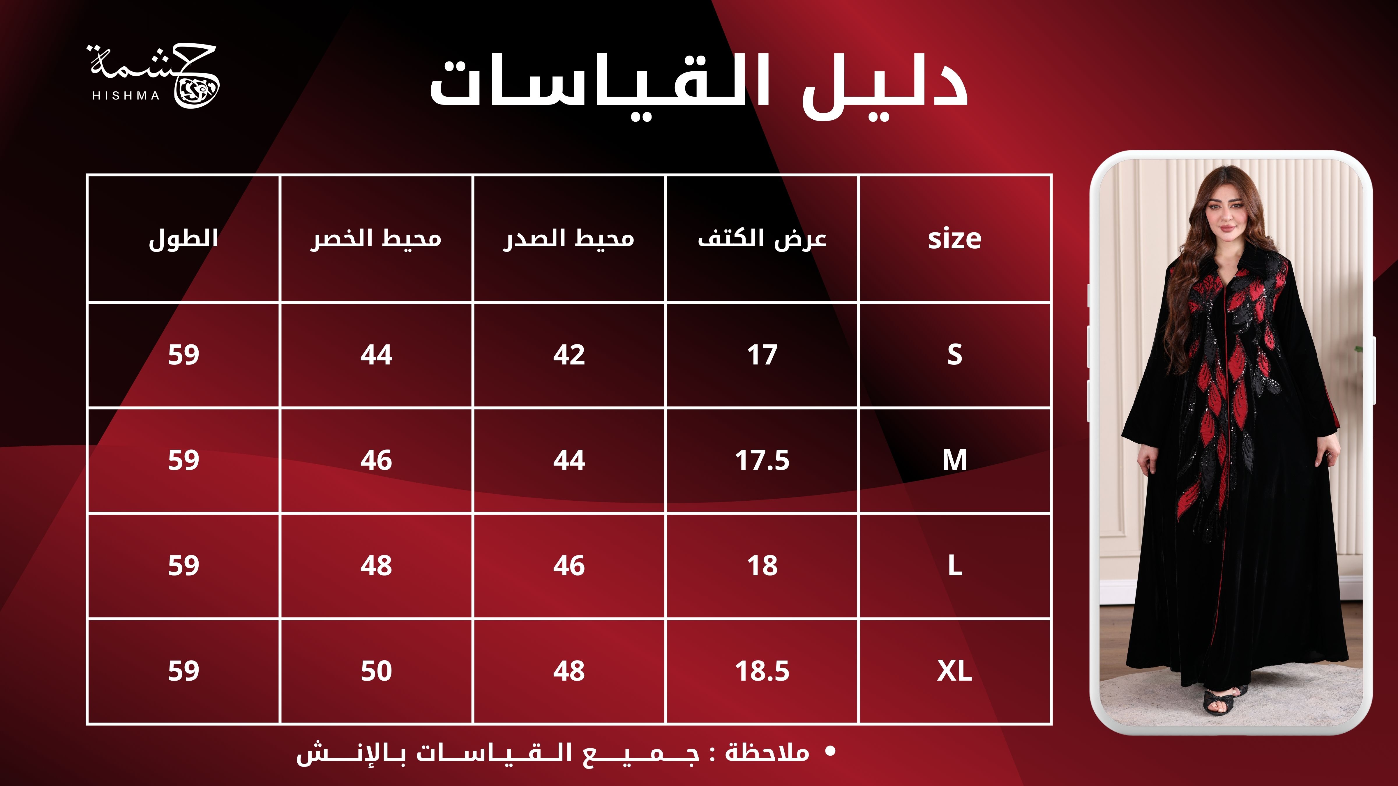 اختاري المقاس المناسب لك من خلال دليل المقاسات لتضمني ارتداء مثالي للجلابية.