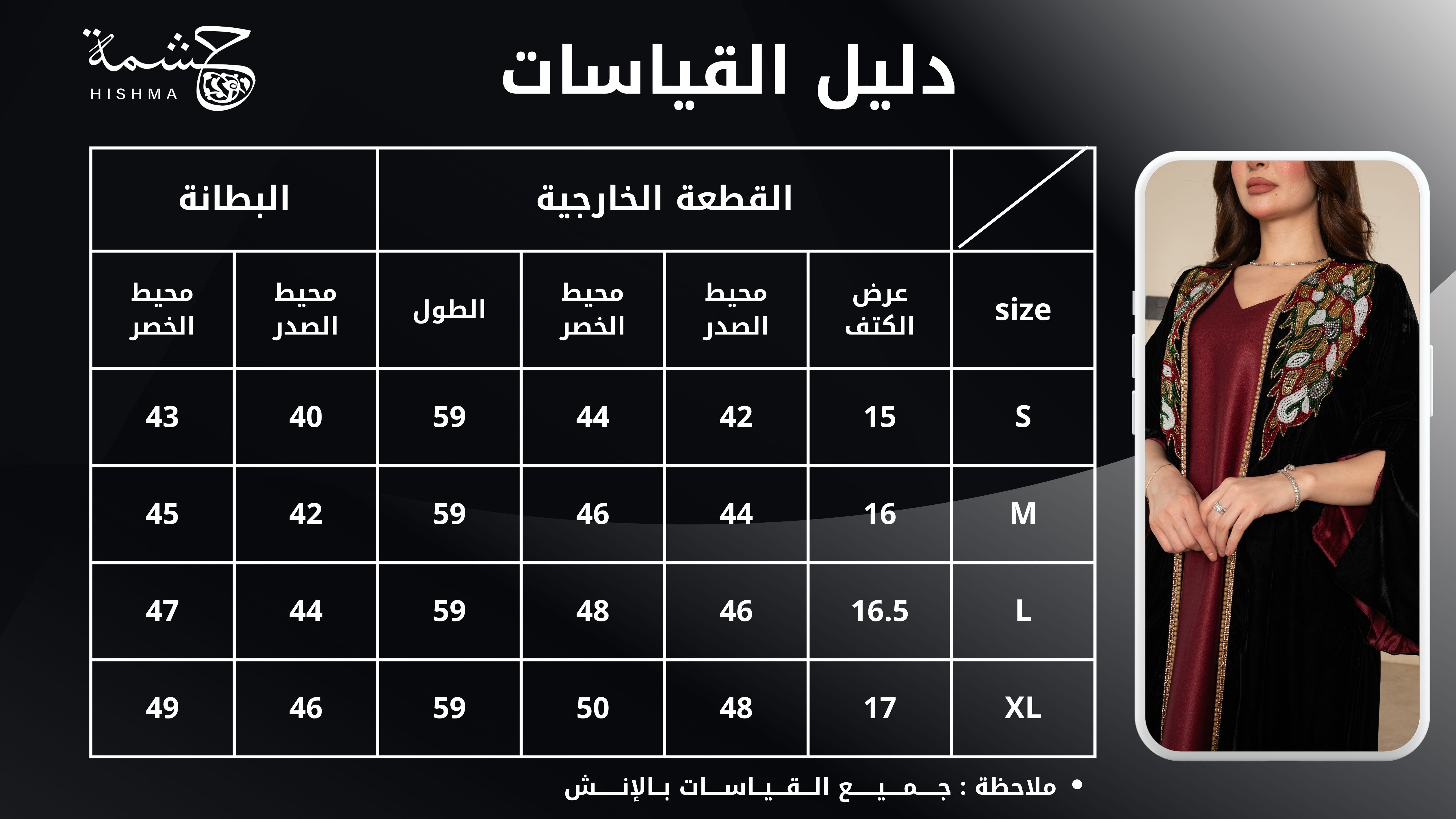 جلابية مخمل قطعتين بتطريز شك في الصدر وبطانة ساتان