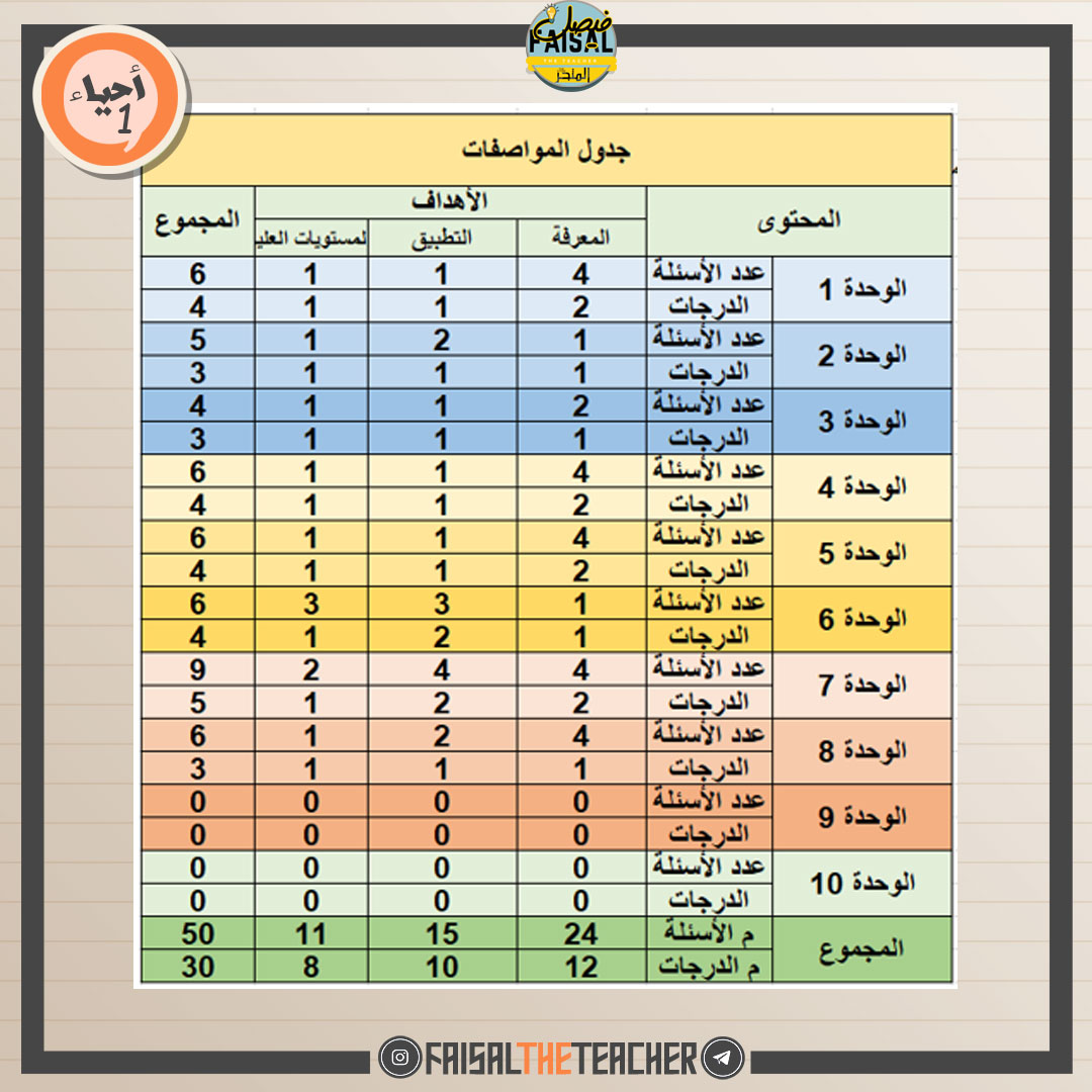⚠️ الاختبار مصمم على جدول المواصفات لإدارة التعليم الرياض