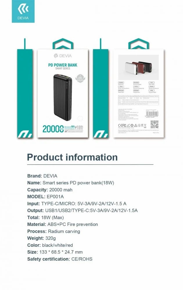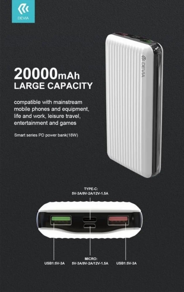 باور بانك 20000 ديفيا الحل الأمثل لمشكلة النفاذ السريع للبطارية خصوصا عند السفر أو الخروج يمكنك الاستمتاع بافضل تجربة مريحة وآمنة عند استخدامك باور بانك ديفيا مقدم من افضل الماركات الشهيرة التي تهتم بتقديم أفضل جودة يقدم بهيكل خارجي يتحمل كثرة الاستخدام لفترة طويلة دون الحاجة لتبديله أو تغييره