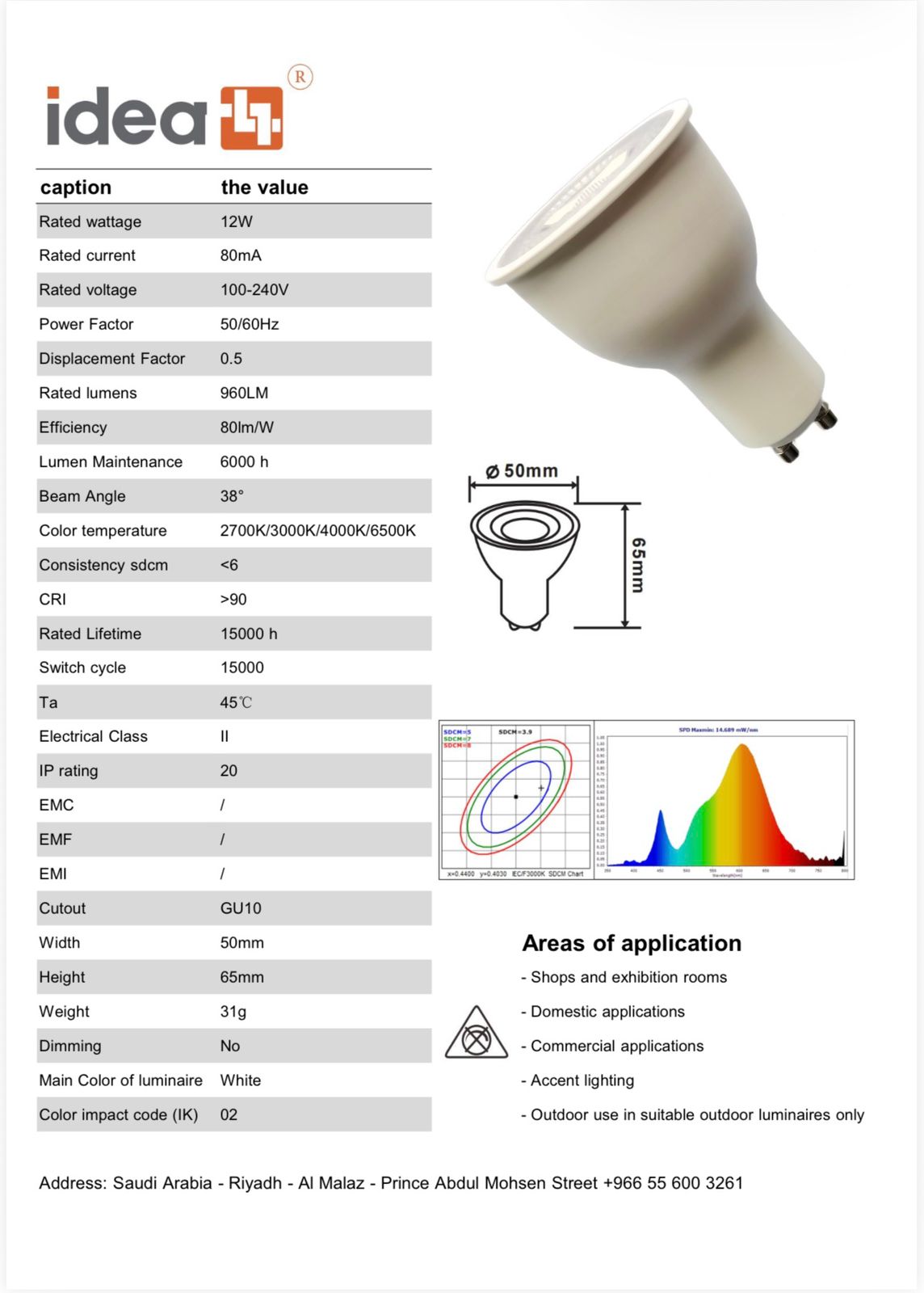 وصف عدسة سيراميك GU10 LED عالية الجودة 12 واط من ايديا لايت