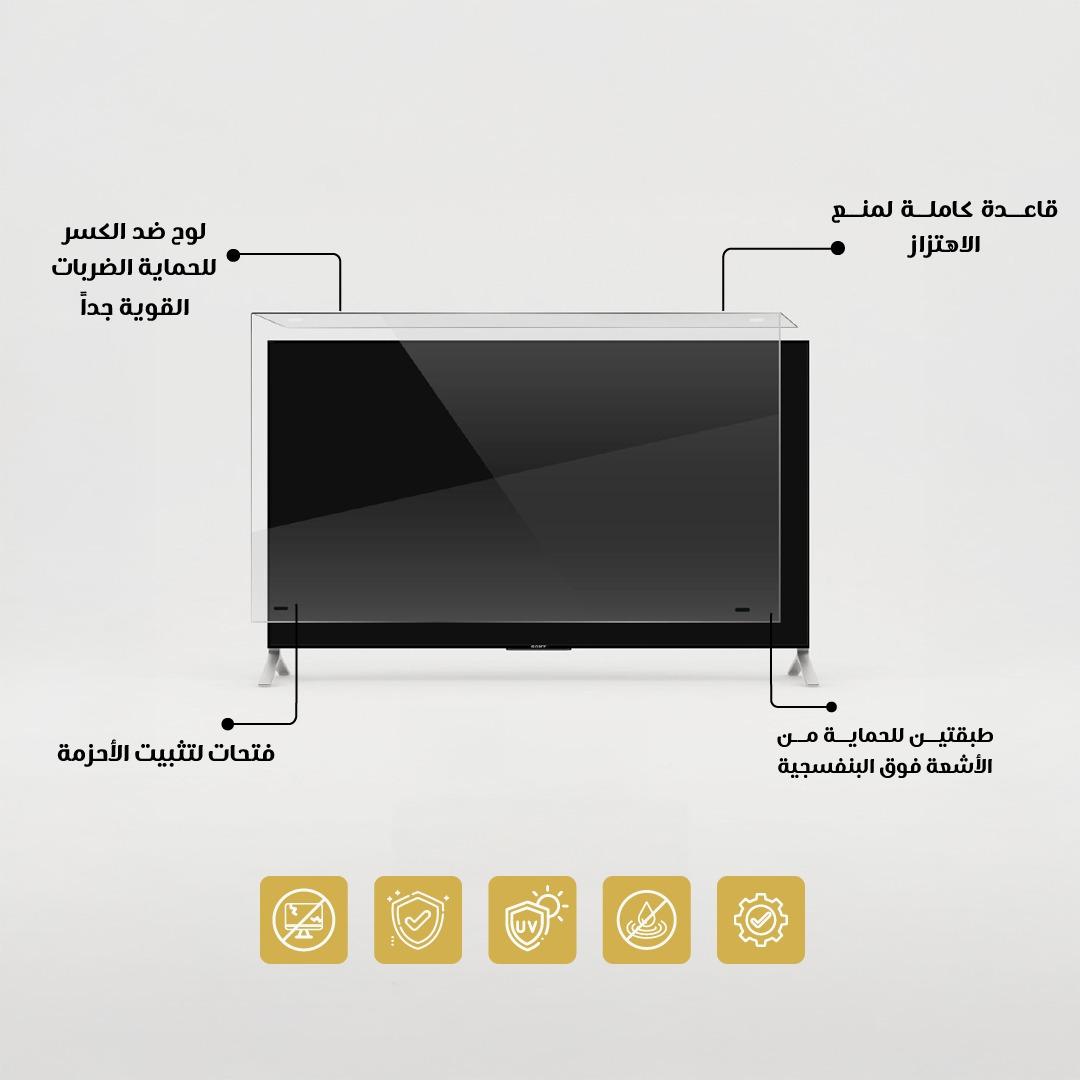 نقدم واقي شاشة تلفزيون شفاف وأصلي ضد الكسر والخدوش، يحافظ على وضوح الصورة والألوان. متجر سعودي متخصص في حماية الشاشات لجميع المقاسات، بجودة عالية وضمان مدى الحياة