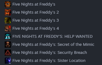 - بكج فايف نايت ات فريدي | Five Nights At Freddys ( ستيم )