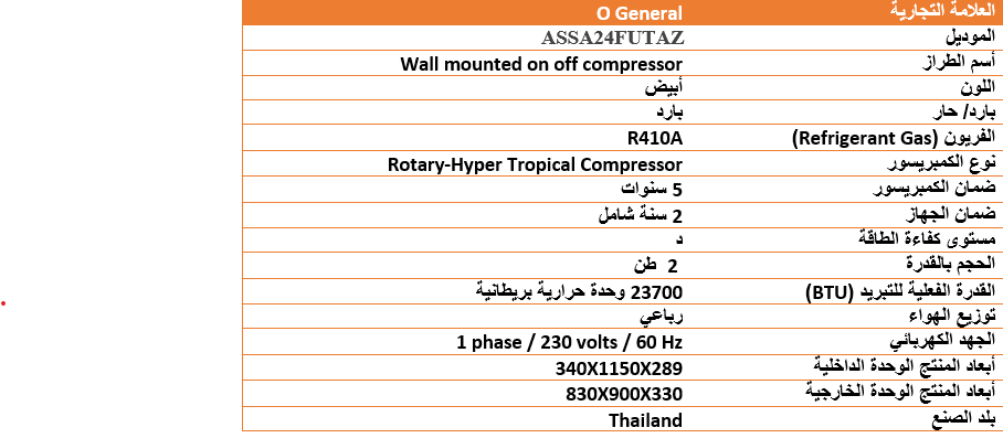 - مكيف هواء حائطي جنرال، 23700 وحدة ة بارد،