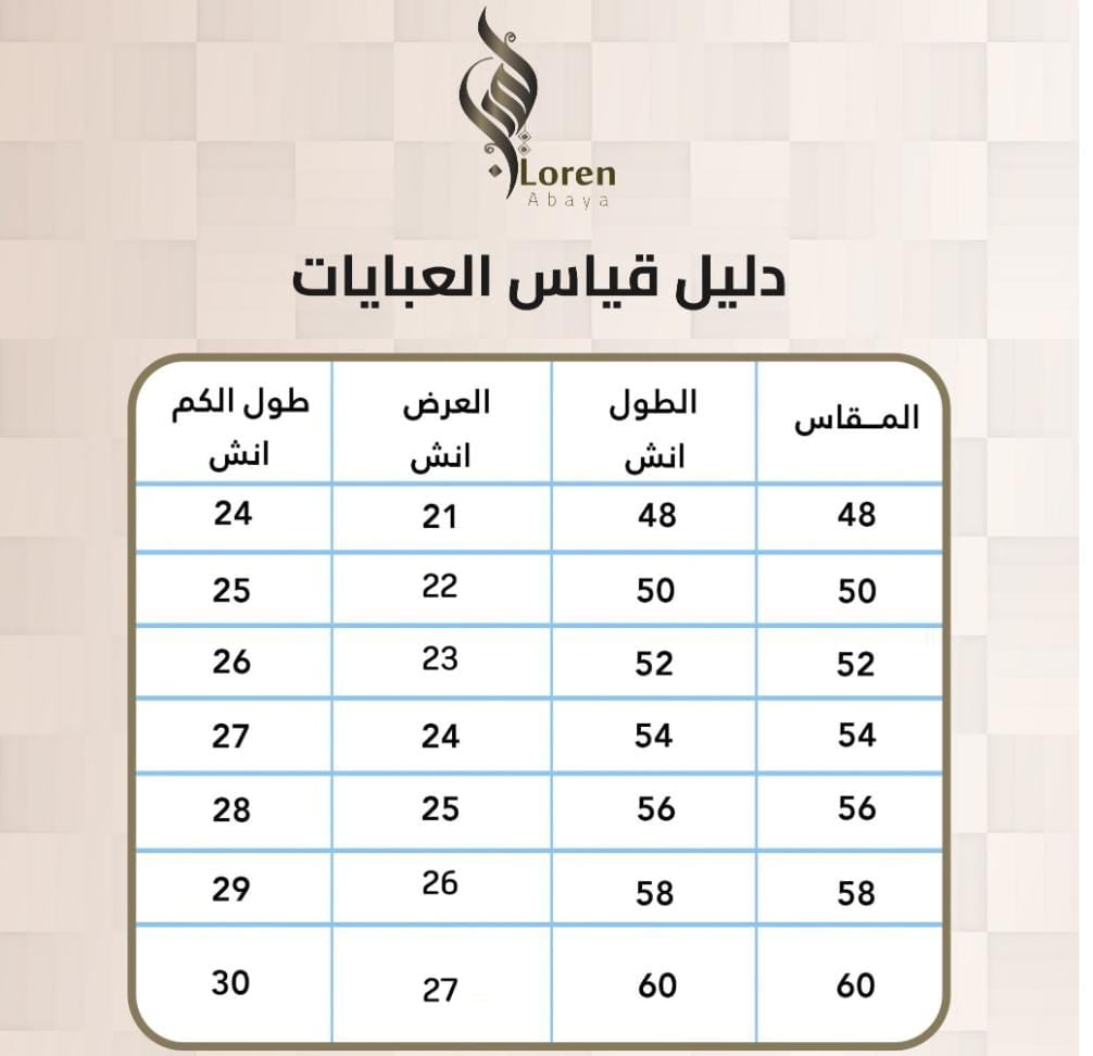 مواصفات عباية نور سحاب مخفي
