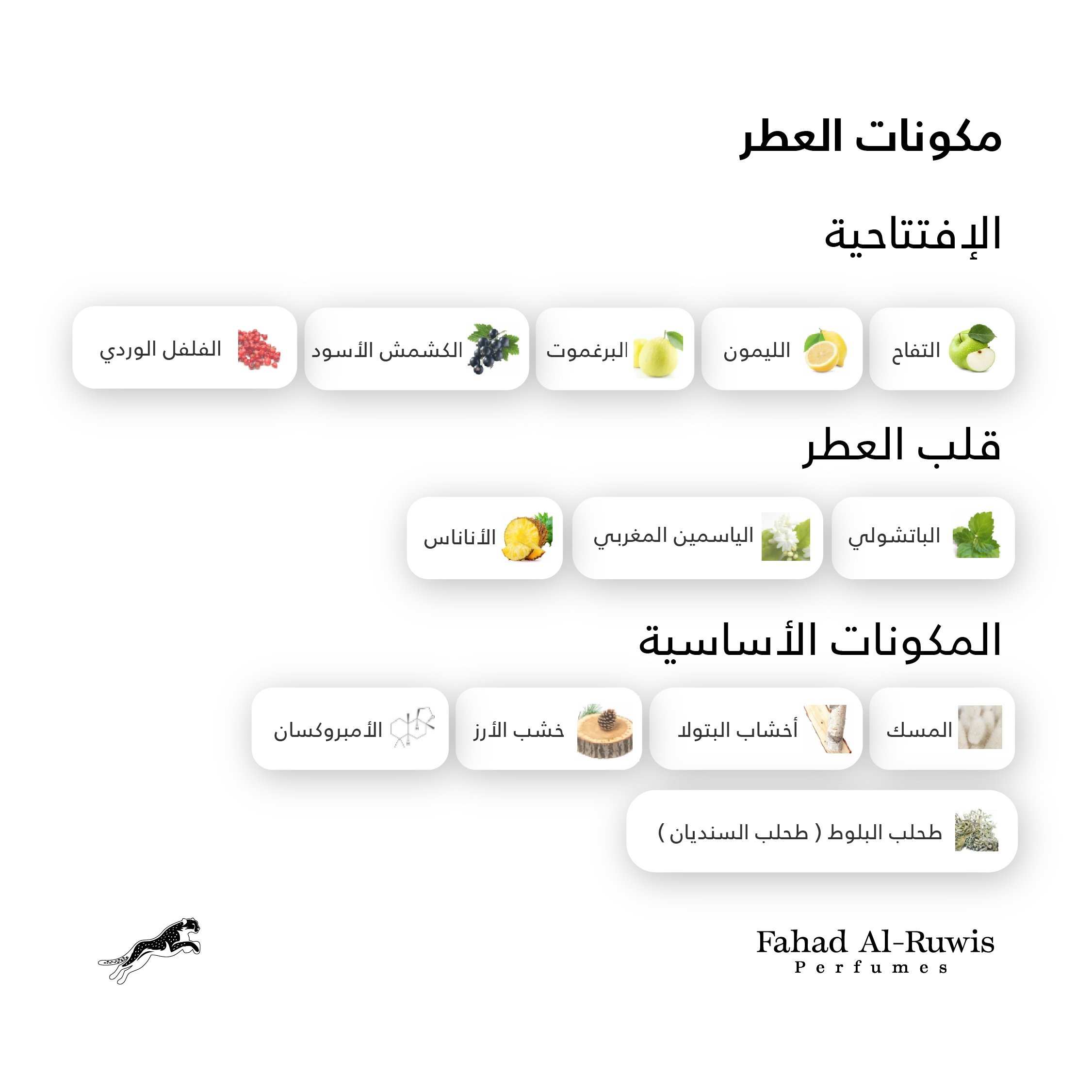 عطور فهد الرويس مستوحاة من روائع العطور العالمية، مع لمسة فريدة تعكس أسلوبك. نعتمد تخميراً دقيقاً لـ 14 يوماً في بيئة تبريد مثالية لتكتمل روعة الرائحة ونقائها. نقدم لك عطوراً فاخرة، التزامنا الصدق والجودة والإتقان