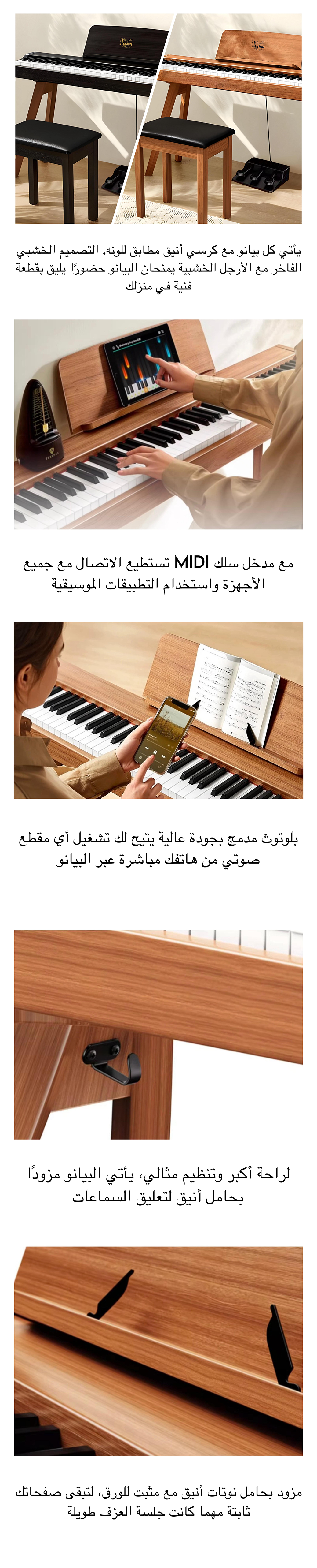 • كورس احترافي بالعربية مضمن مع البيانو لتبدأ رحلة التعلم والعزف من اليوم الأول بسهولة وثقة.