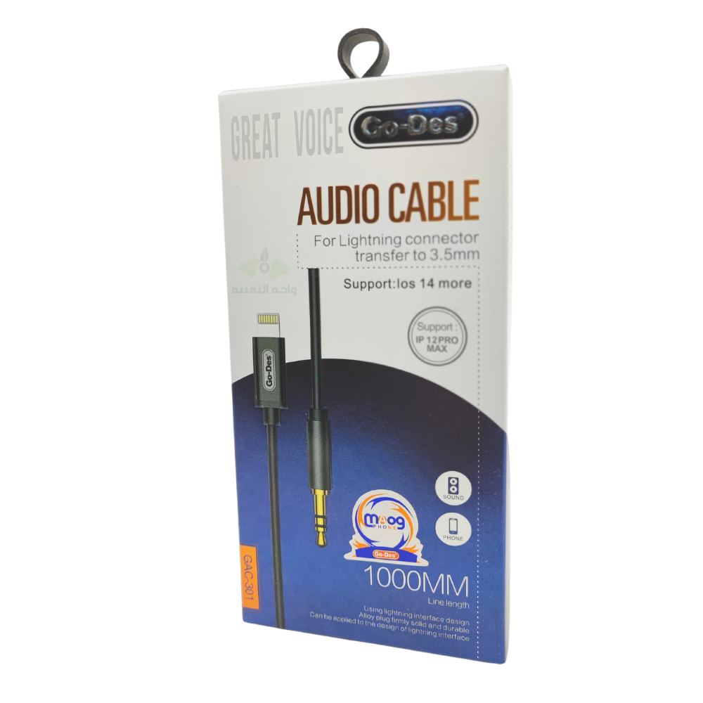 كيبل AUX ايفون - Lightning قوي ضد القطع 1متر Go Des GAC-301 3.5mm Lightning Aux Audio Cable