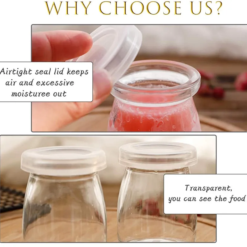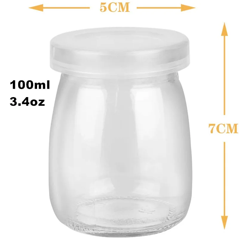 100 مللي 10 قطعة برطمانات زبادي صغيرة أكواب بودنغ زجاجية مع أغطية بولي ايثيلين وعاء مثالي لخلايا الحليب والتوابل والعسل جرة موس