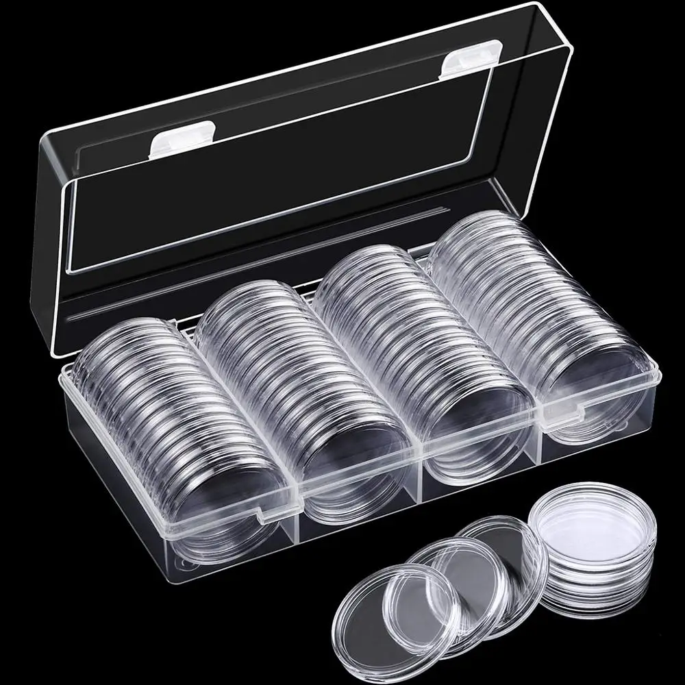 60 قطعة 41 مللي متر حامل كبسولات العملات المعدنية مع صندوق منظم التخزين لمجموعة العملات القديمة التذكارية بالدولار النسر الفضي