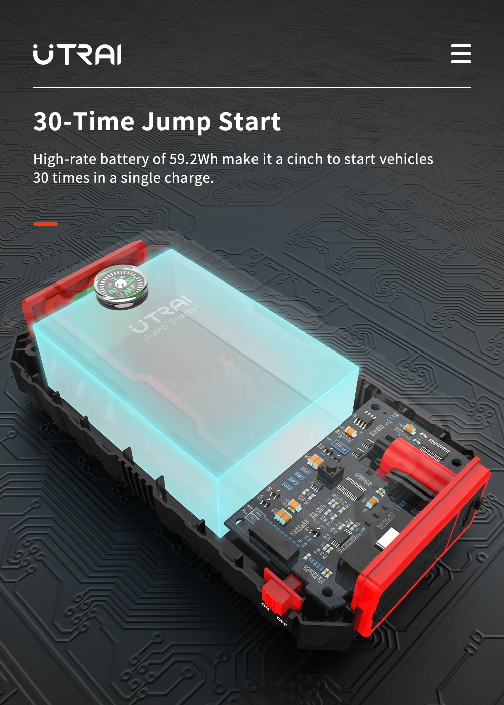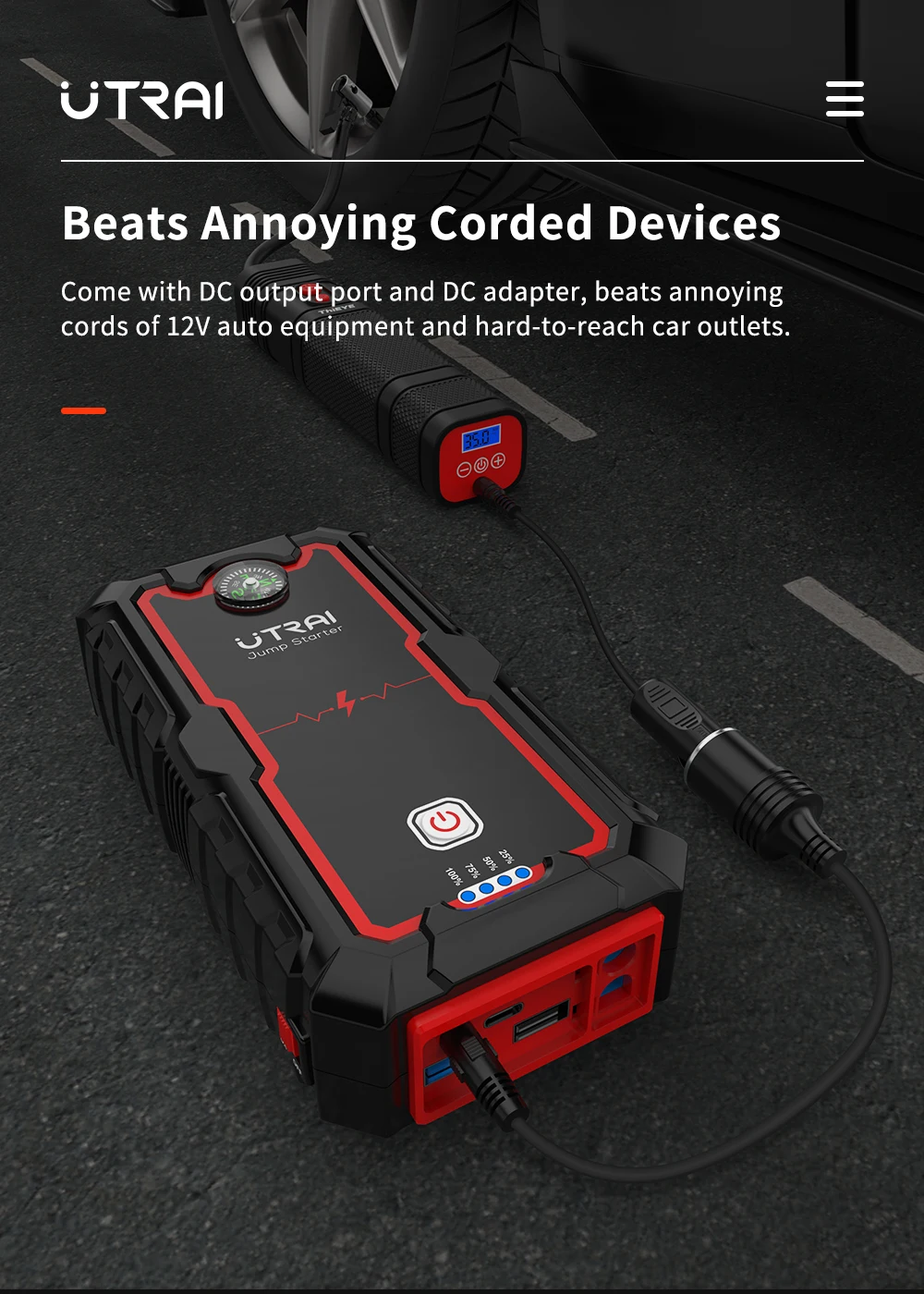 UTRAI 2000A بطارية السيارة بداية 12 فولت السيارات بدء جهاز الطوارئ المحمولة قوة البنك سيارة boosterالانتقال كاتب ل 8.0L الغاز 6L