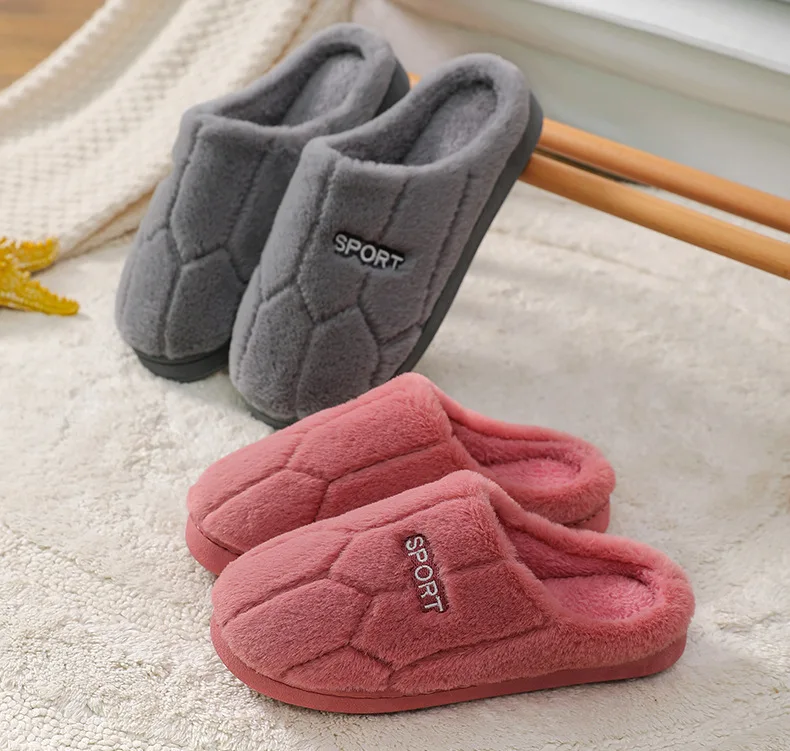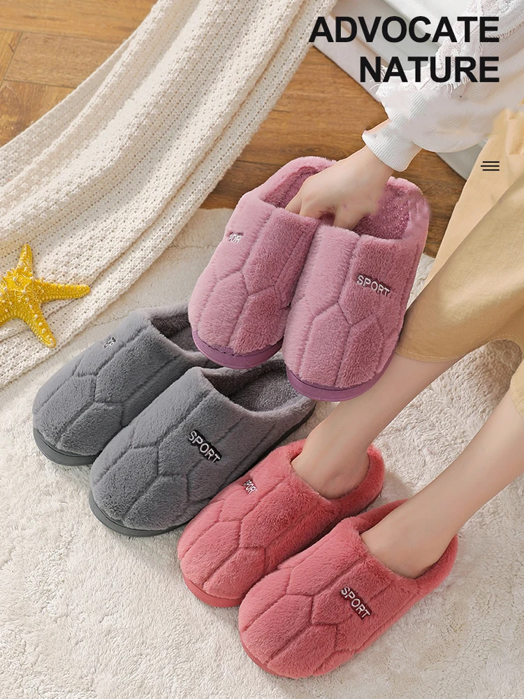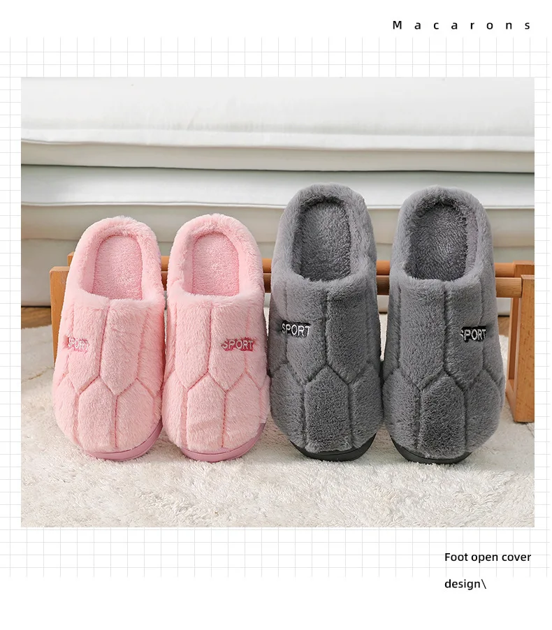 دافئ شريط أفخم النعال القطن للرجال ، لينة وحيد فروي ، الشرائح المنزلية في الأماكن المغلقة ، فو الفراء الصلبة ، أحذية المنزل للزوجين ، الشتاء