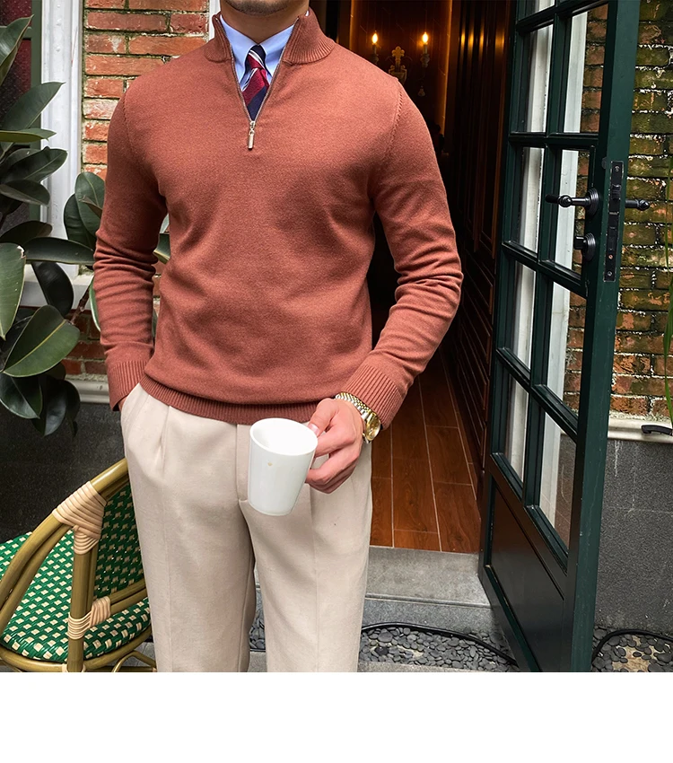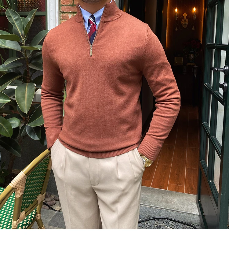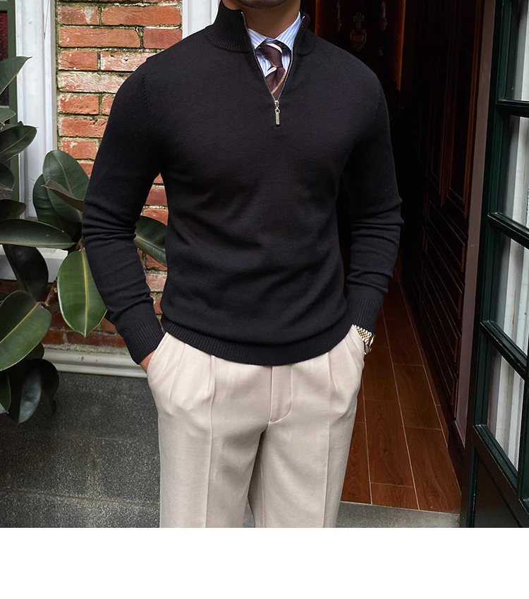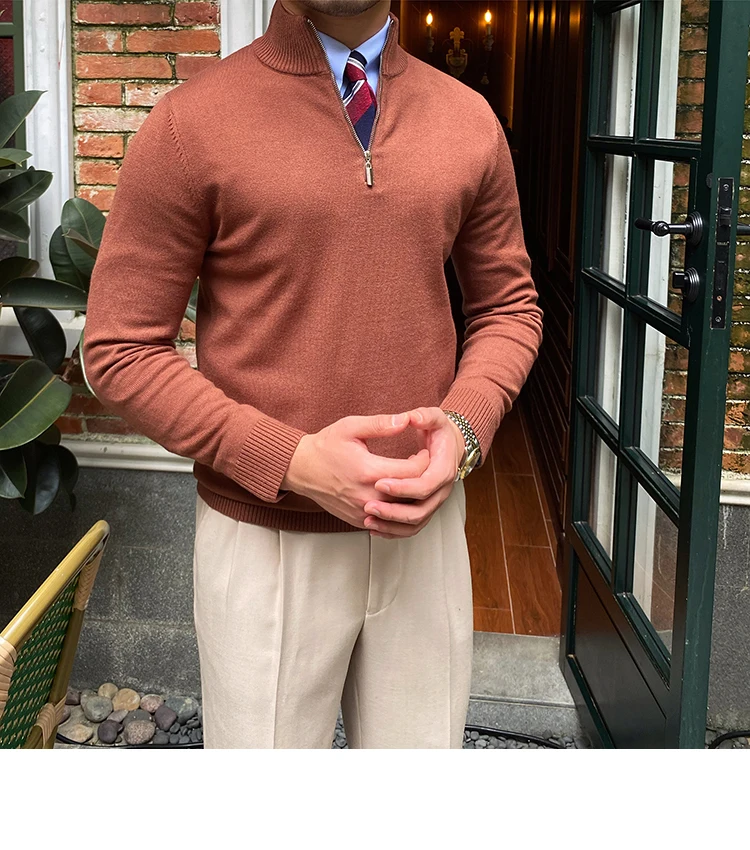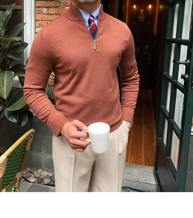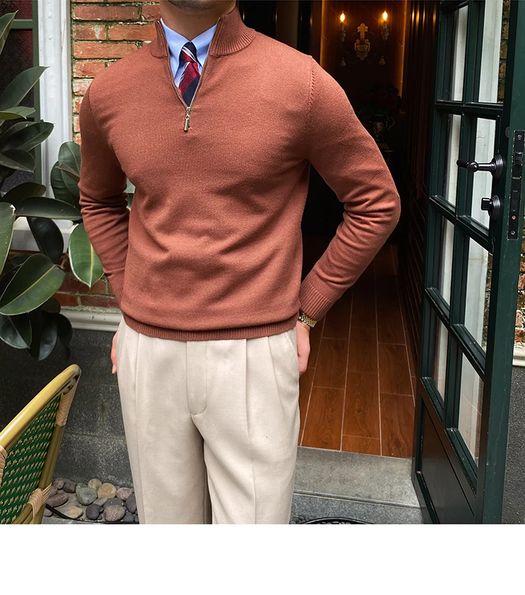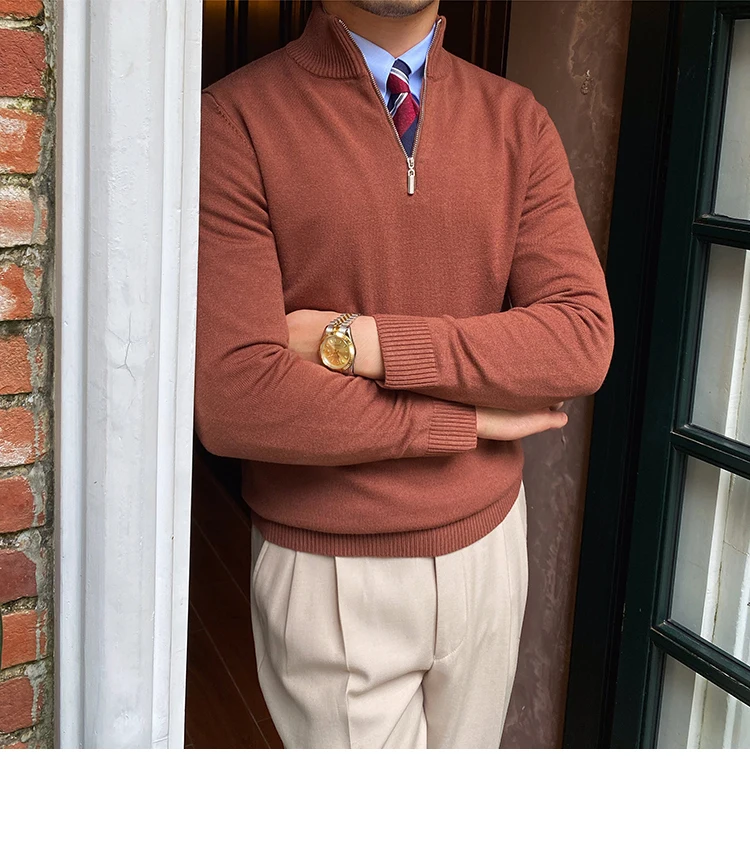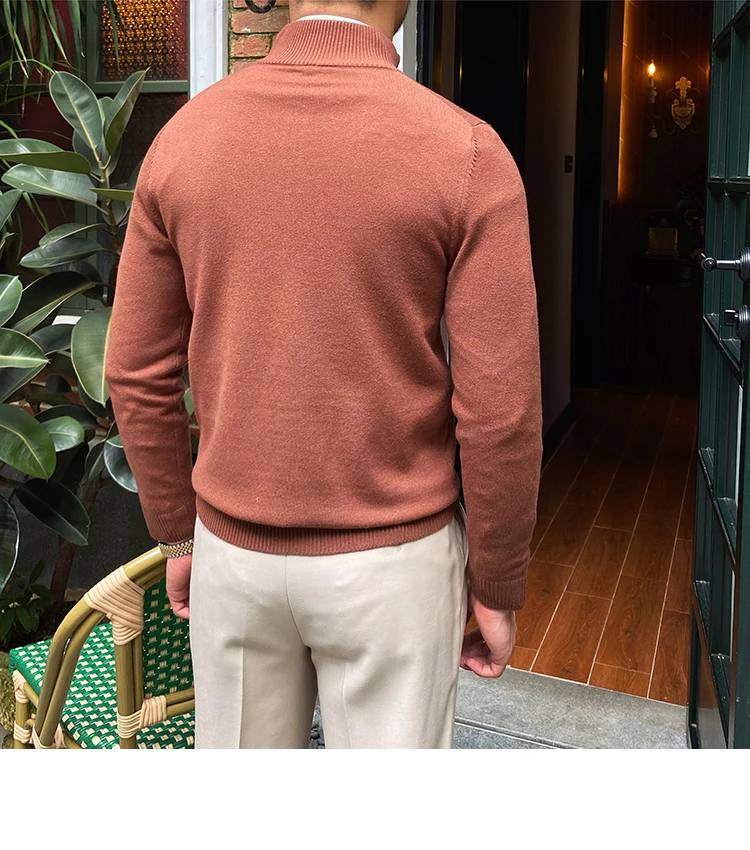 الرجال الرجعية أحادية اللون سترة بولو ، محبوك سترة ، سليم صالح ، الشتاء البلوز ، جودة التلبيب ، الألوان