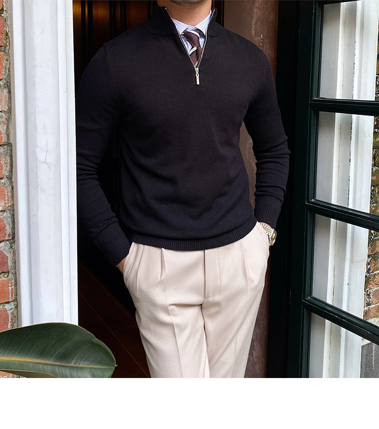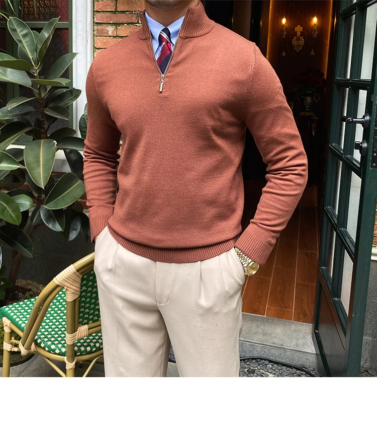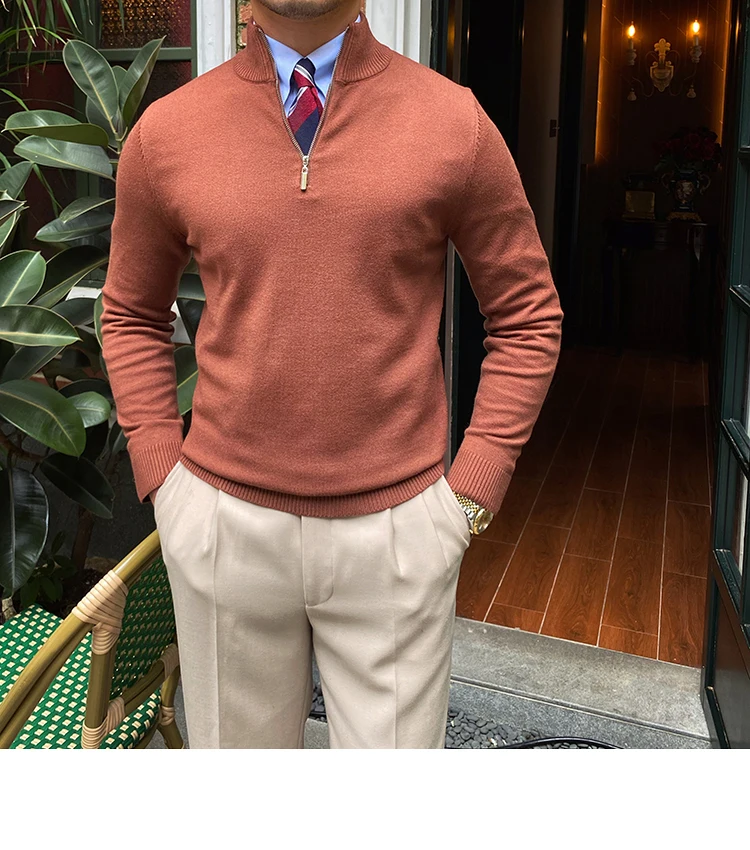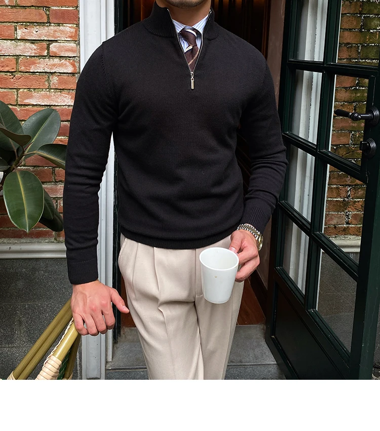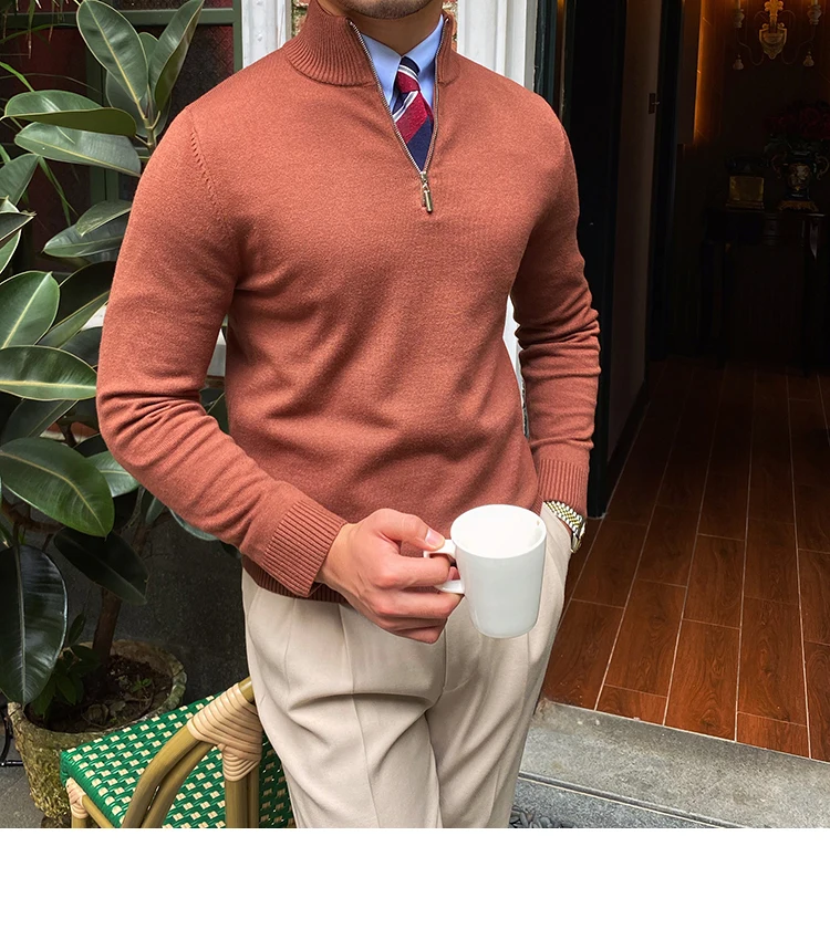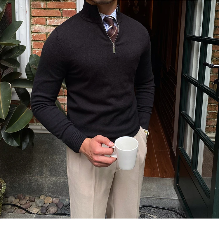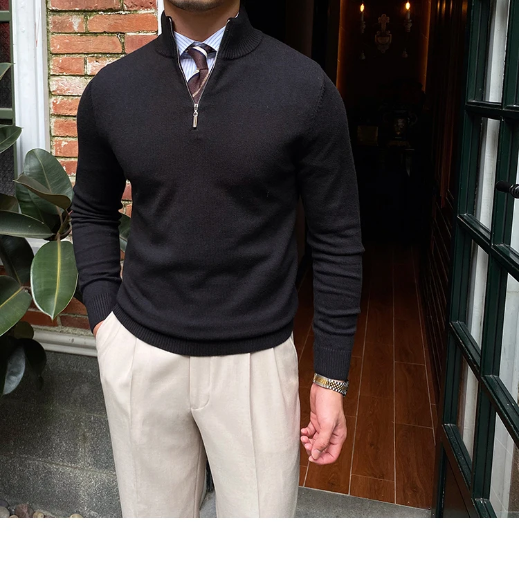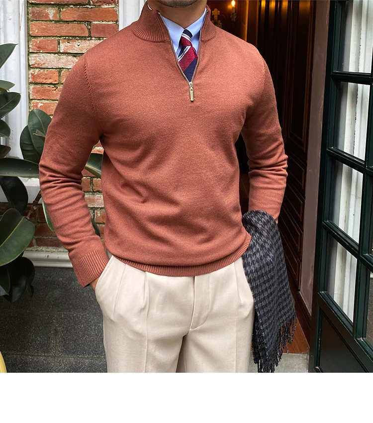 الرجال الرجعية أحادية اللون سترة بولو ، محبوك سترة ، سليم صالح ، الشتاء البلوز ، جودة التلبيب ، الألوان