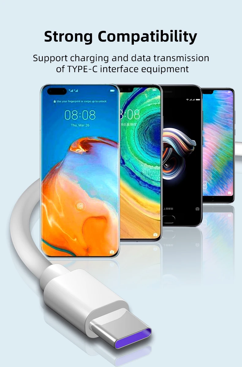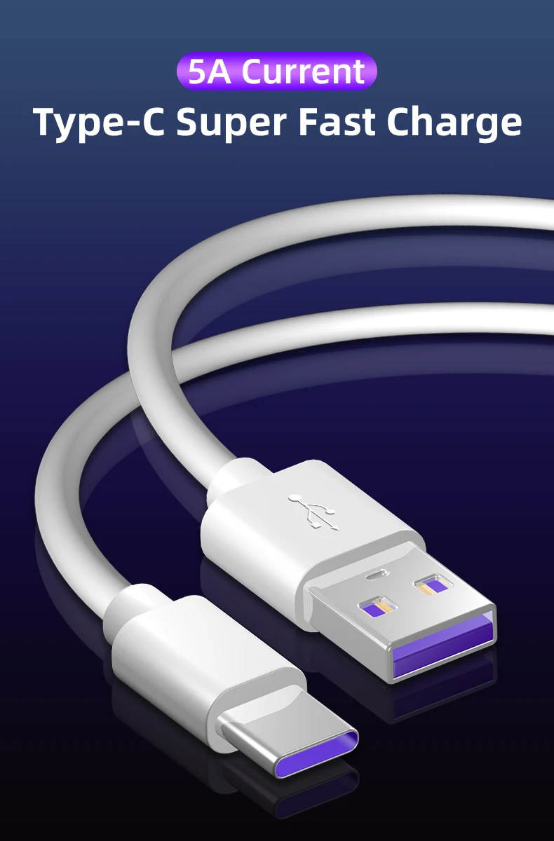 سريع تهمة 5A USB نوع C كابل لسامسونج S20 S9 S8 شاومي هواوي P30 Mate40 برو الهاتف المحمول شحن سلك أبيض Blcak كابل