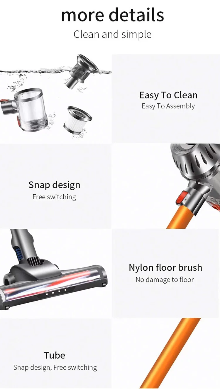 استمتع بتجربة شفط قوية وفعالة مع محركنا المتطور بدون فرش.لقد تم تصميمه لتحقيق الأداء الفائق والمتانة وتوفير الطاقة، مما يجعل التنظيف أسرع وأسهل من أي وقت مضى!
