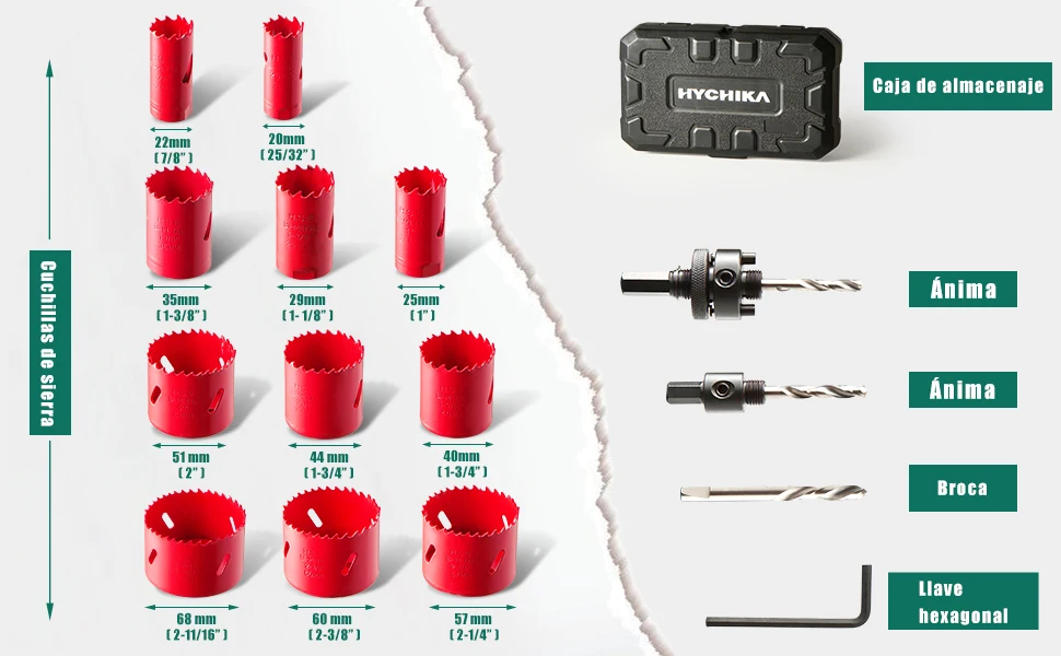 ما تحصل عليه:شفرات منشار ثقب 11 x Hychika ، 2 x mandrels ، 3 x drills ، 1 x مفتاح سداسي ، 1 x صندوق تخزين ، 1 x دليل مستخدم (اللغة الإنجليزية غير مضمونة).
