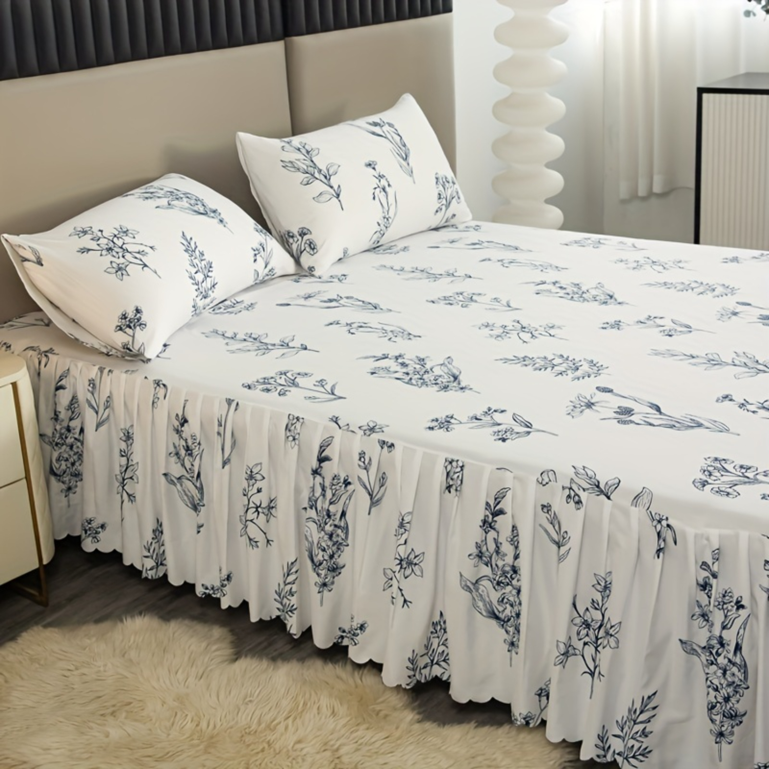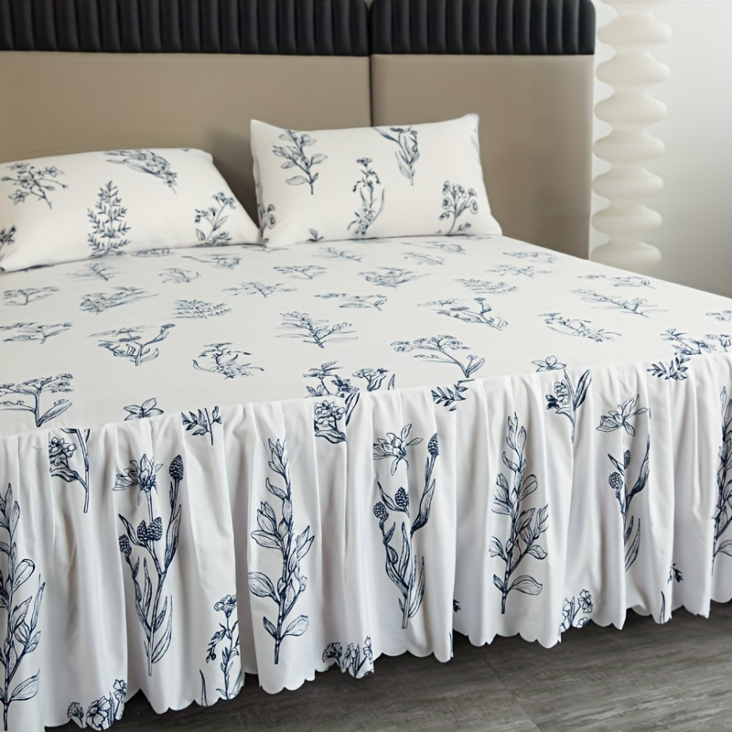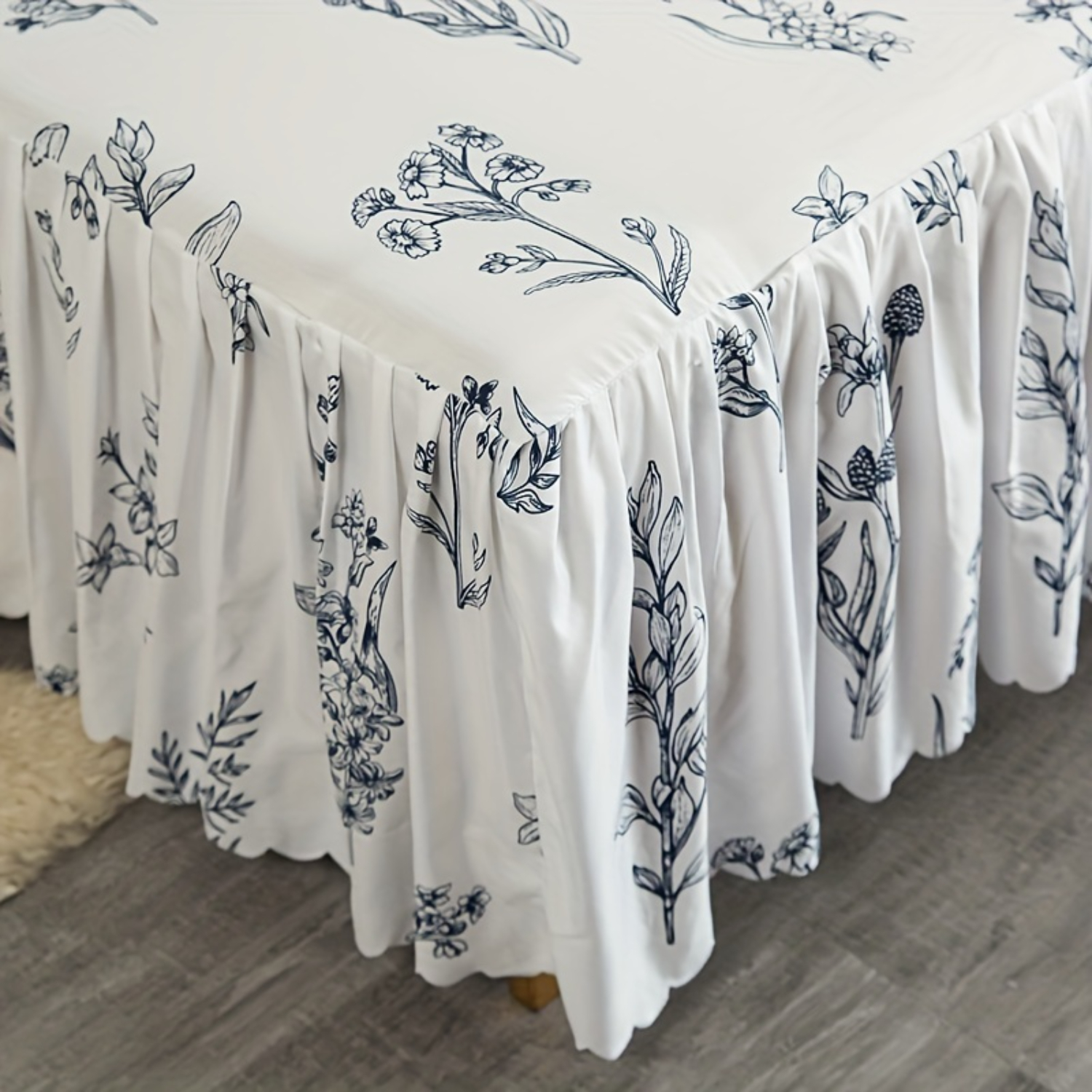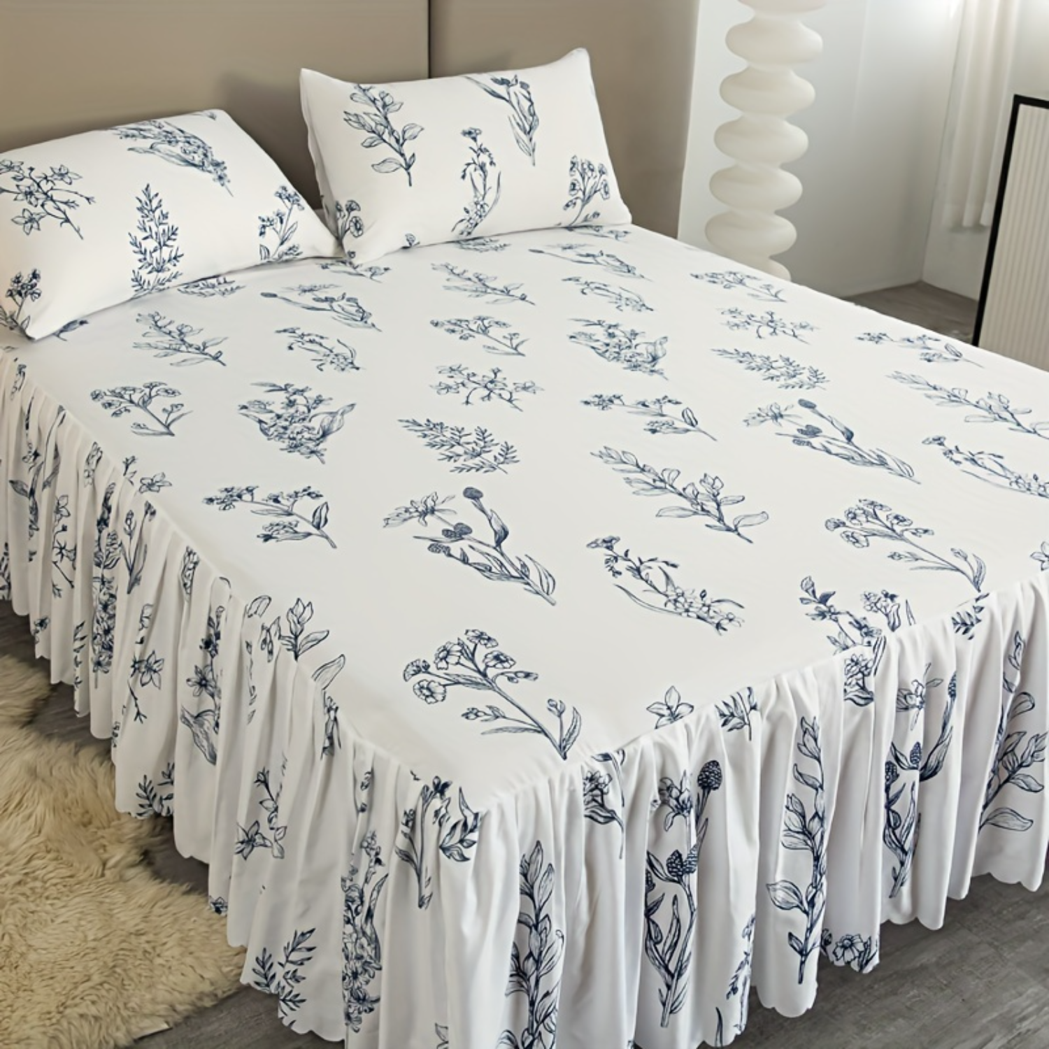 3 قطع تنورة سرير زرقاء ريفية مع 2 كيس وسادة (بدون قلب)، نمط ربطة عنق بيضاء، حماية الفراش لجميع المواسم، طراز ريفي