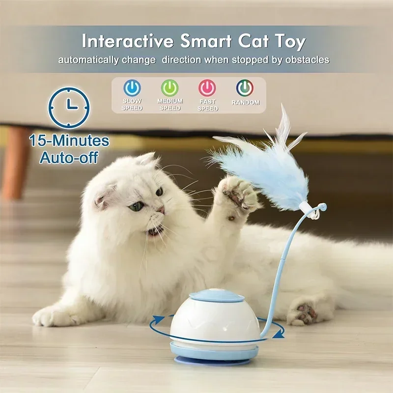 لعبة القط الكهربائية USB شحن 360 الدورية لغز تفاعلي عناصر الحيوانات الأليفة الذكية القط إغاظة ريشة القط لوازم الملحقات