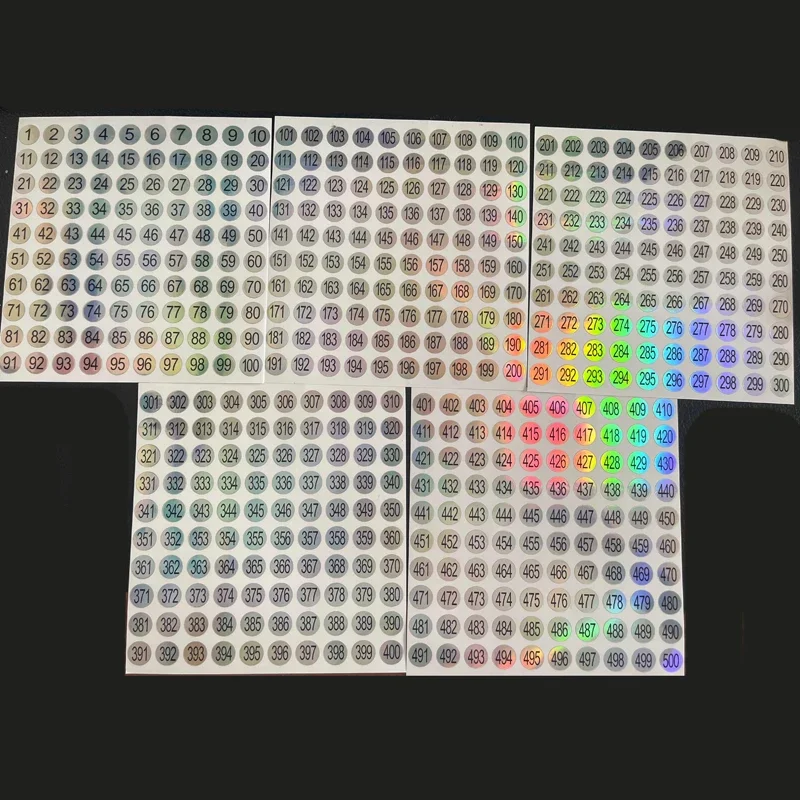 5 ورقة (1-500) تسمية لاصقة رقم الليزر لطلاء الأظافر نصائح ملونة عرض وسم ملصقات أرقام دليل أدوات مانيكير ذاتية الصنع