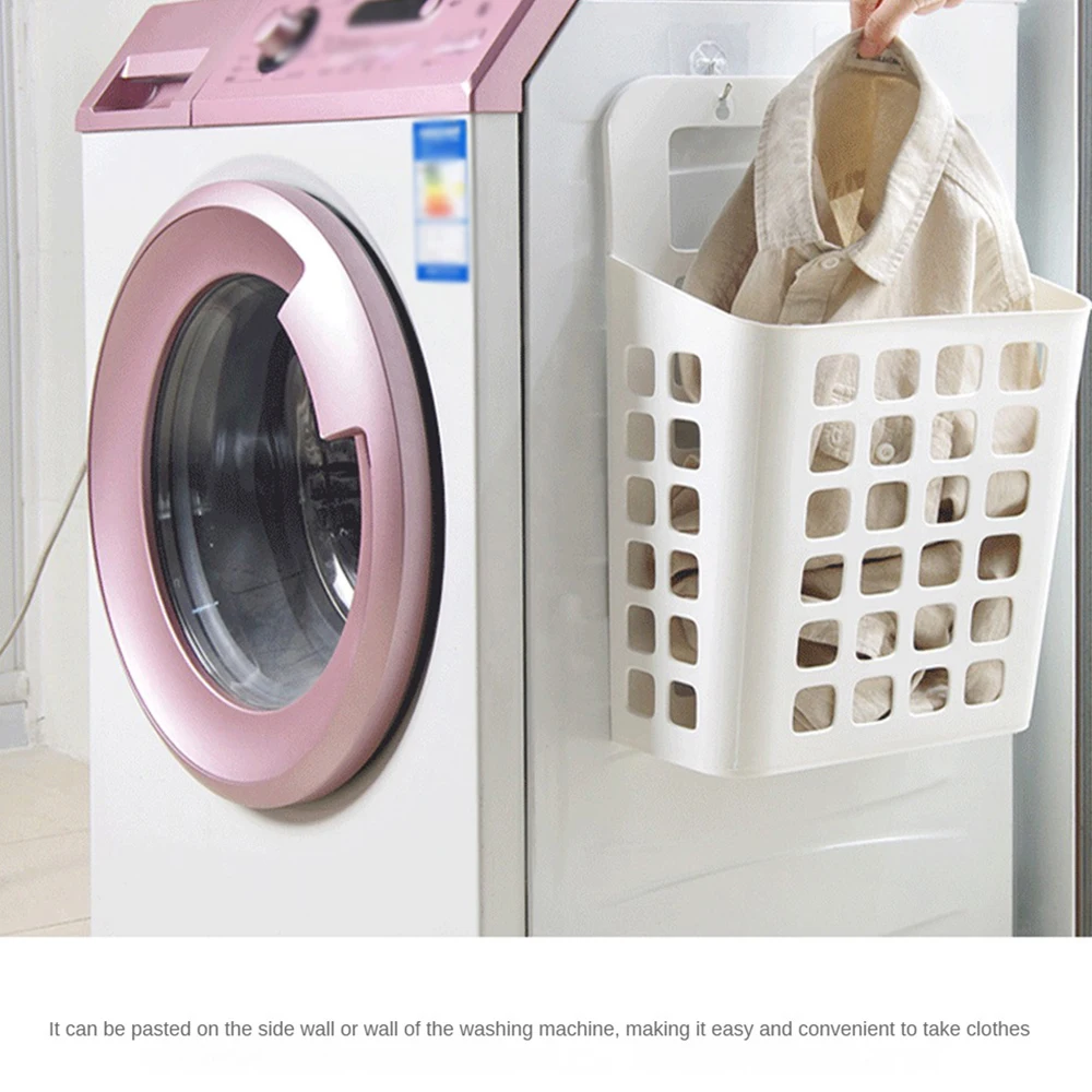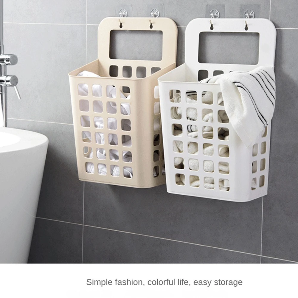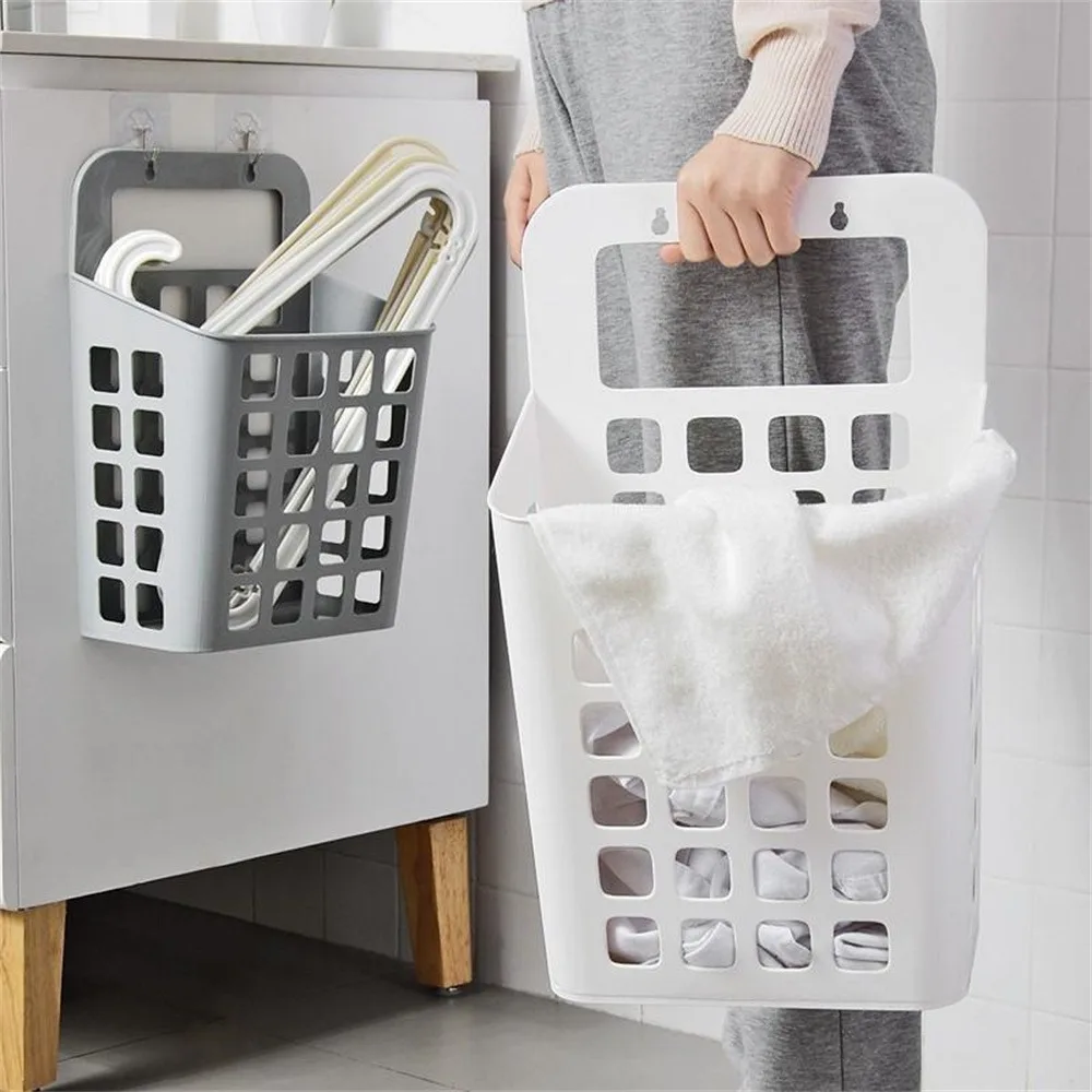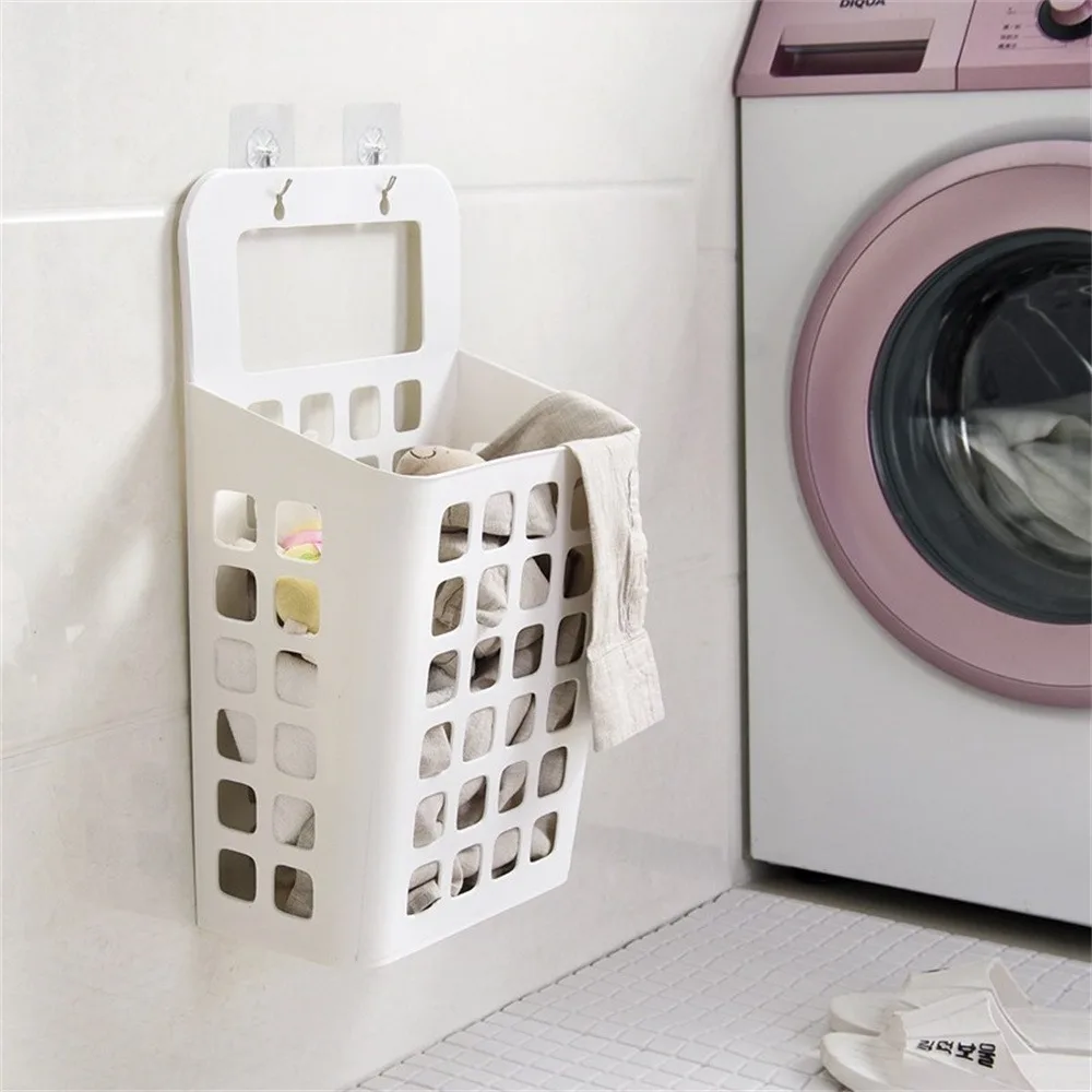 سلة ملابس قذرة قابلة للطي، منظم غسيل مدمج، معلقة على الحائط، تصميم متعدد الوظائف