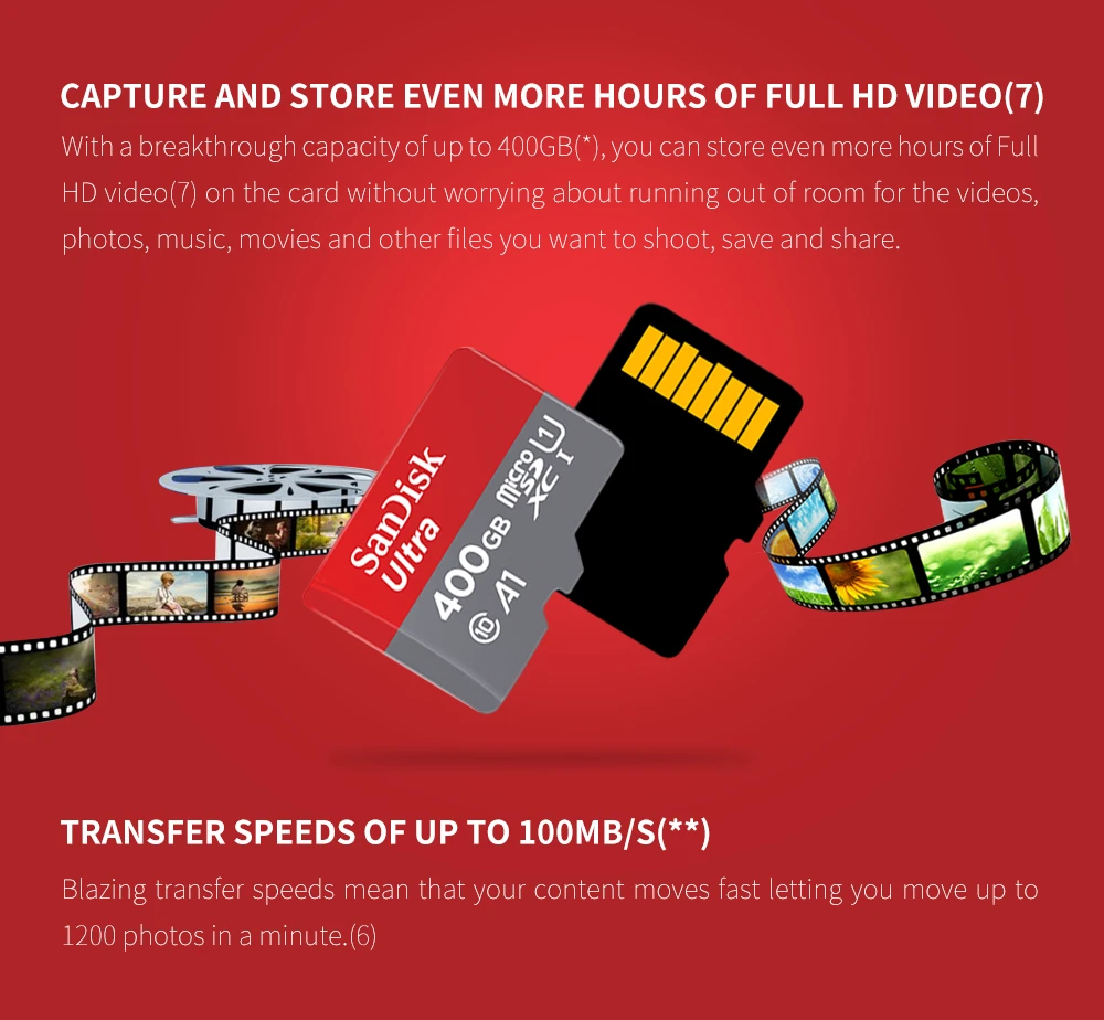 مع مساحة تخزين تصل إلى 512 جيجابايت، توفر بطاقة Sandisk Ultra Micro SD مساحة واسعة للصور ومقاطع الفيديو والتطبيقات الخاصة بك.