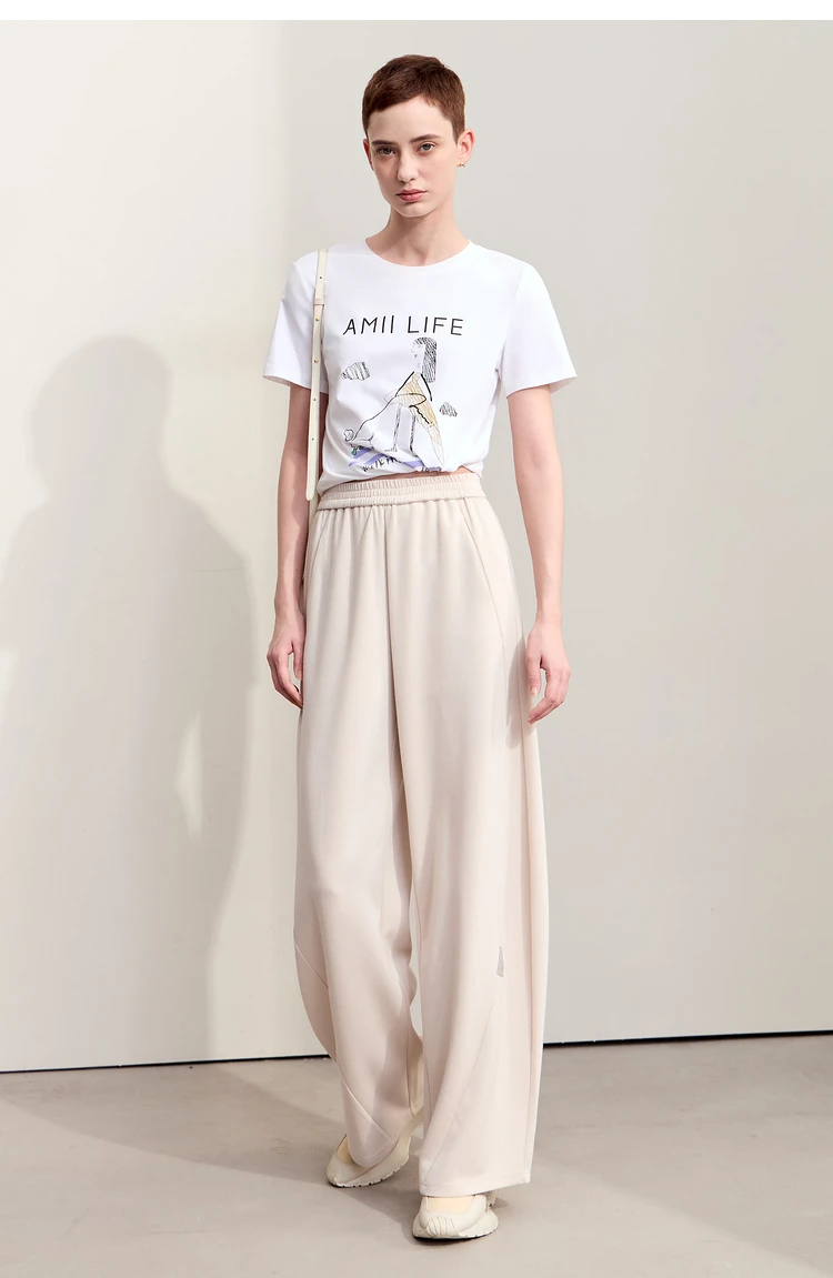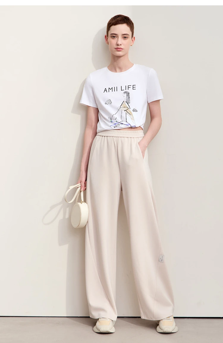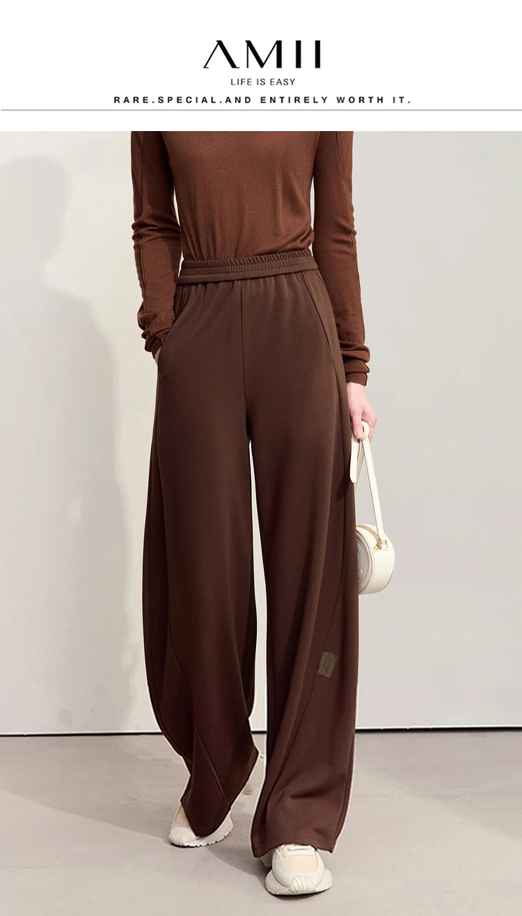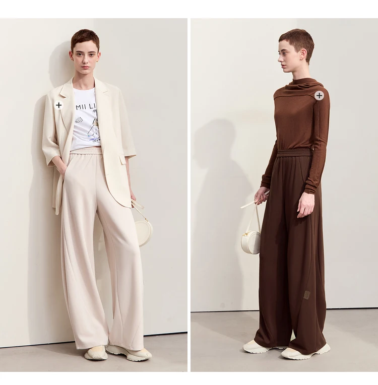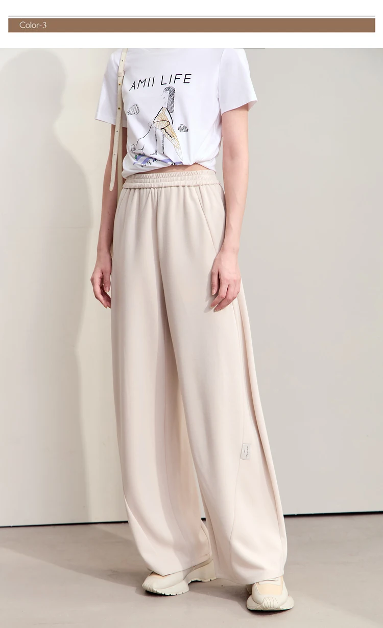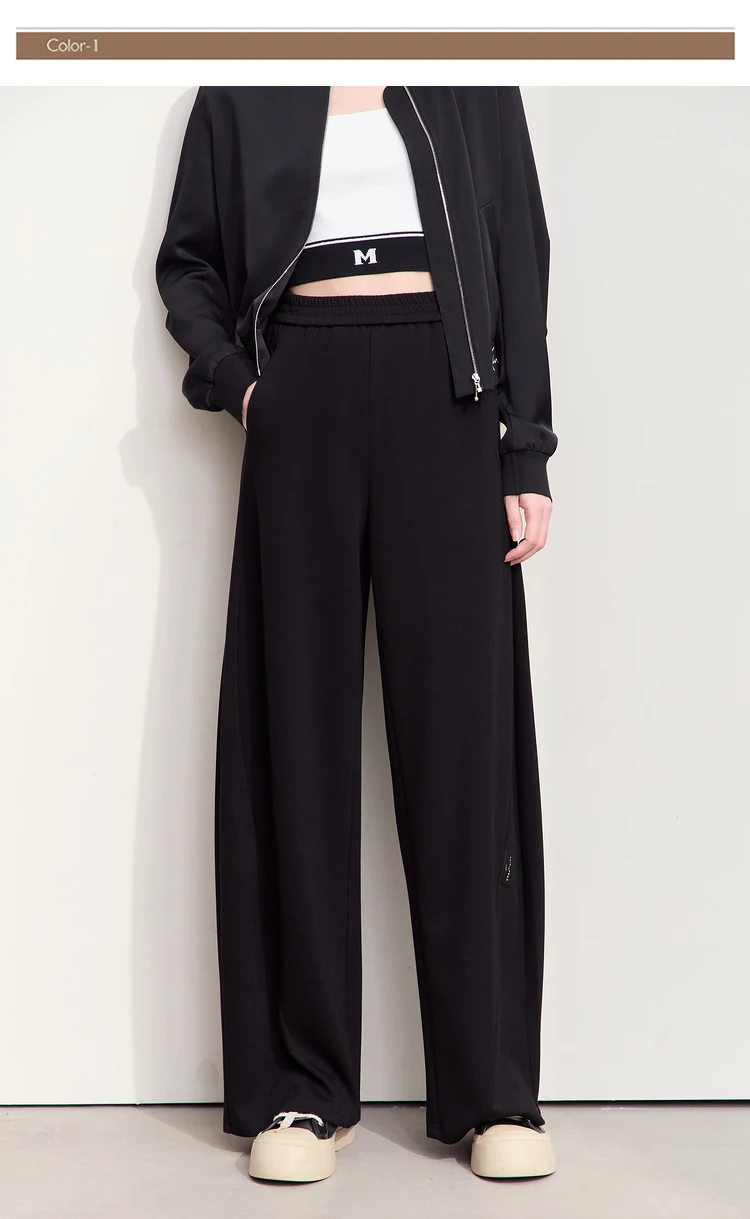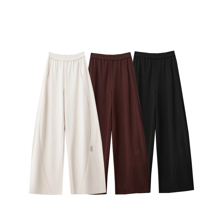 سراويل نسائية بسيطة ، خريف ، جديد ، خصر مرن ، بنطلون موزة ، ساق واسعة كاجوال ، أساسيات ، بنطلون سادة ، way