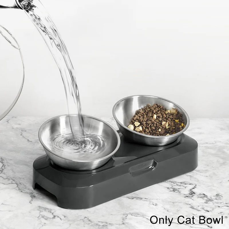 وعاء قطط من الفولاذ المقاوم للصدأ سهل التنظيف لأطعمة الكلاب والمياه مع حامل معدني للقطط والكلاب وعاء تغذية مزدوج واحد للحيوانات الأليفة