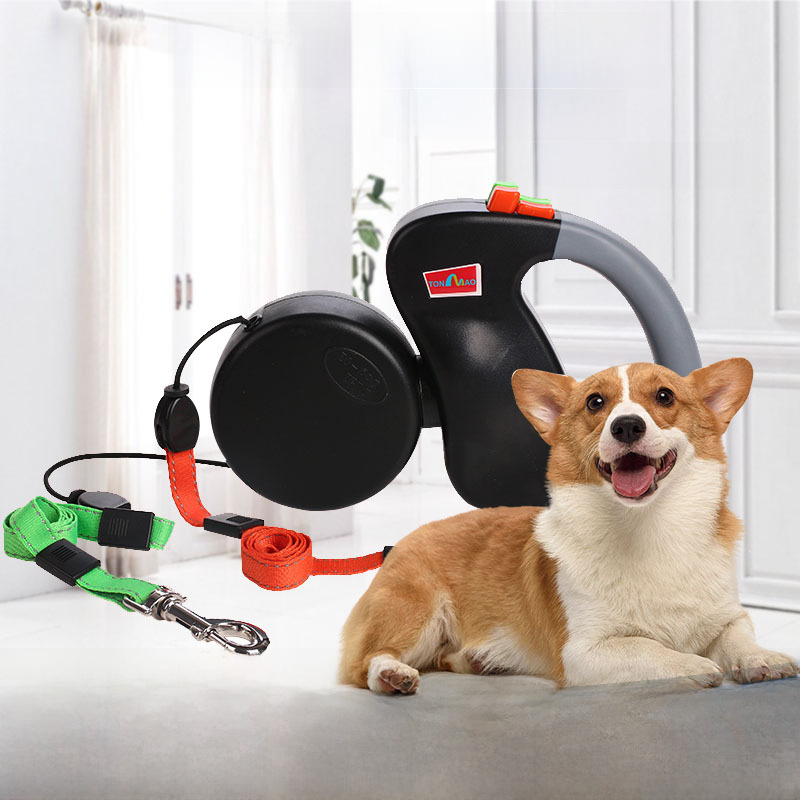 التلقائي قابل للسحب المقود سحب واحد اثنين مزدوجة الإبداعية الكلب المشي المقود كلب سلسلة مستلزمات الحيوانات الأليفة الكلب حبل الكلب تسخير المقود