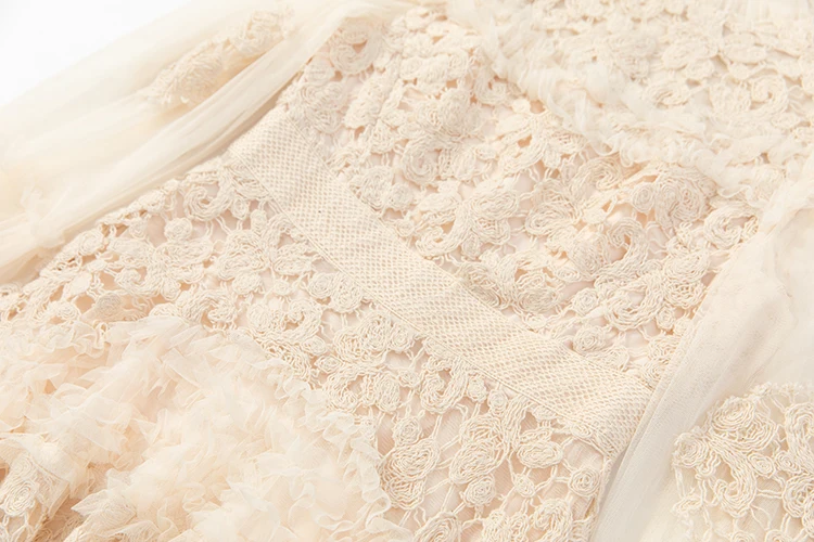 LD LINDA DELLA مصمم الازياء فستان صيفي المرأة خمر بلون مزاجه صافي الغزل التطريز المتتالية فستان مكشكش