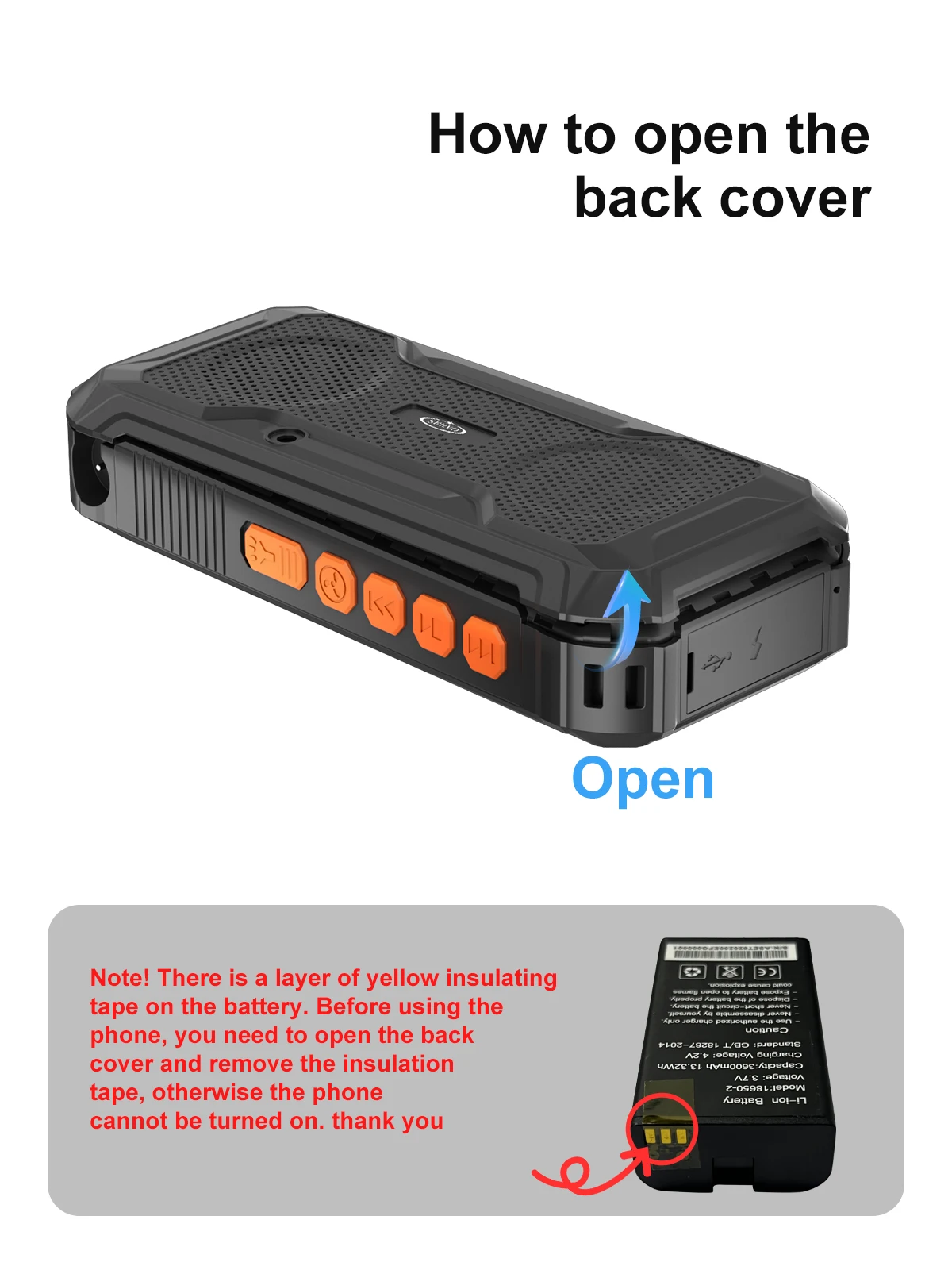 2. توجد طبقة من الشريط العازل على بطارية الهاتف المحمول. قبل استخدام الهاتف، تحتاج إلى فتح الغطاء الخلفي وإزالة الشريط العازل.