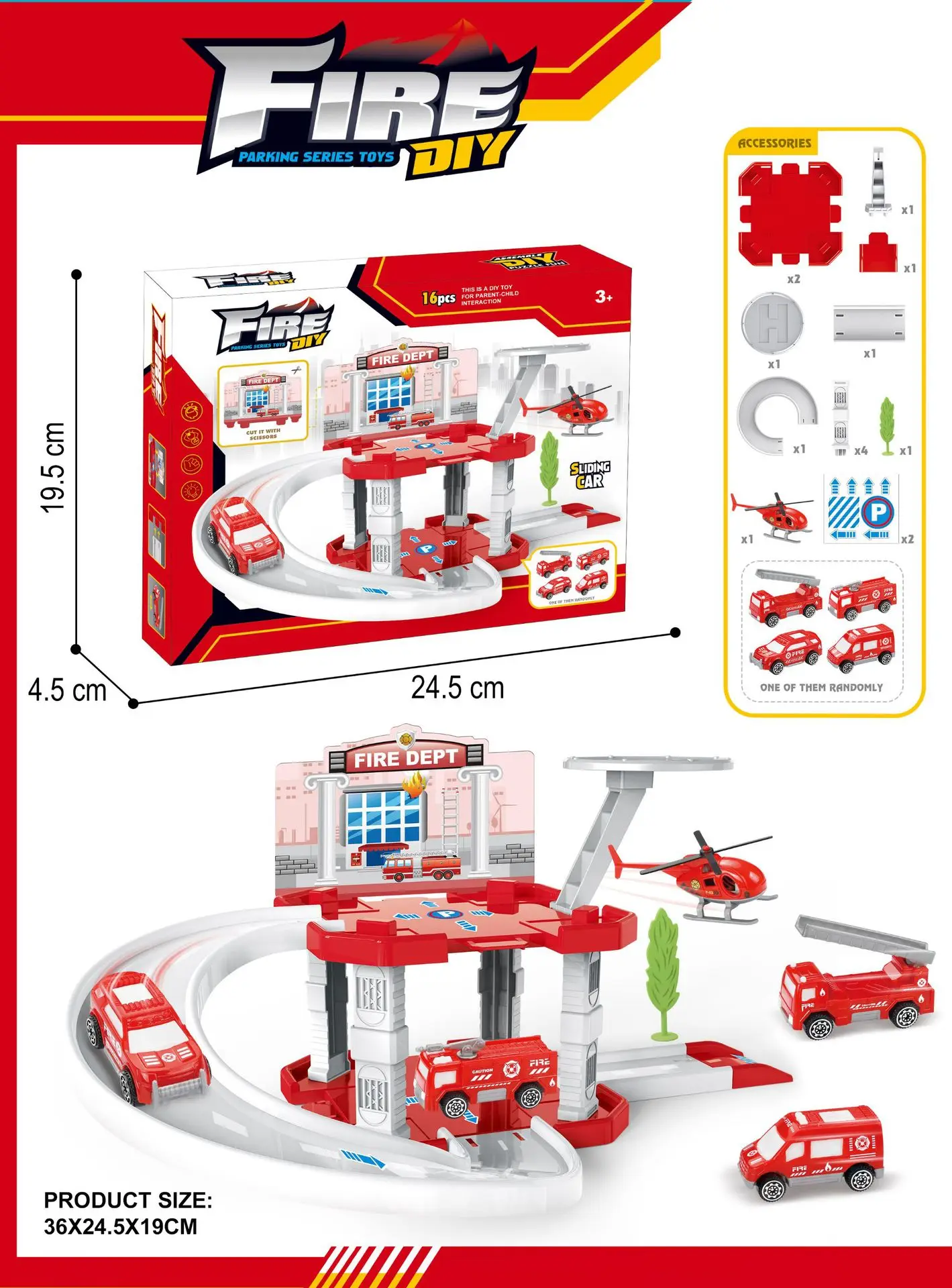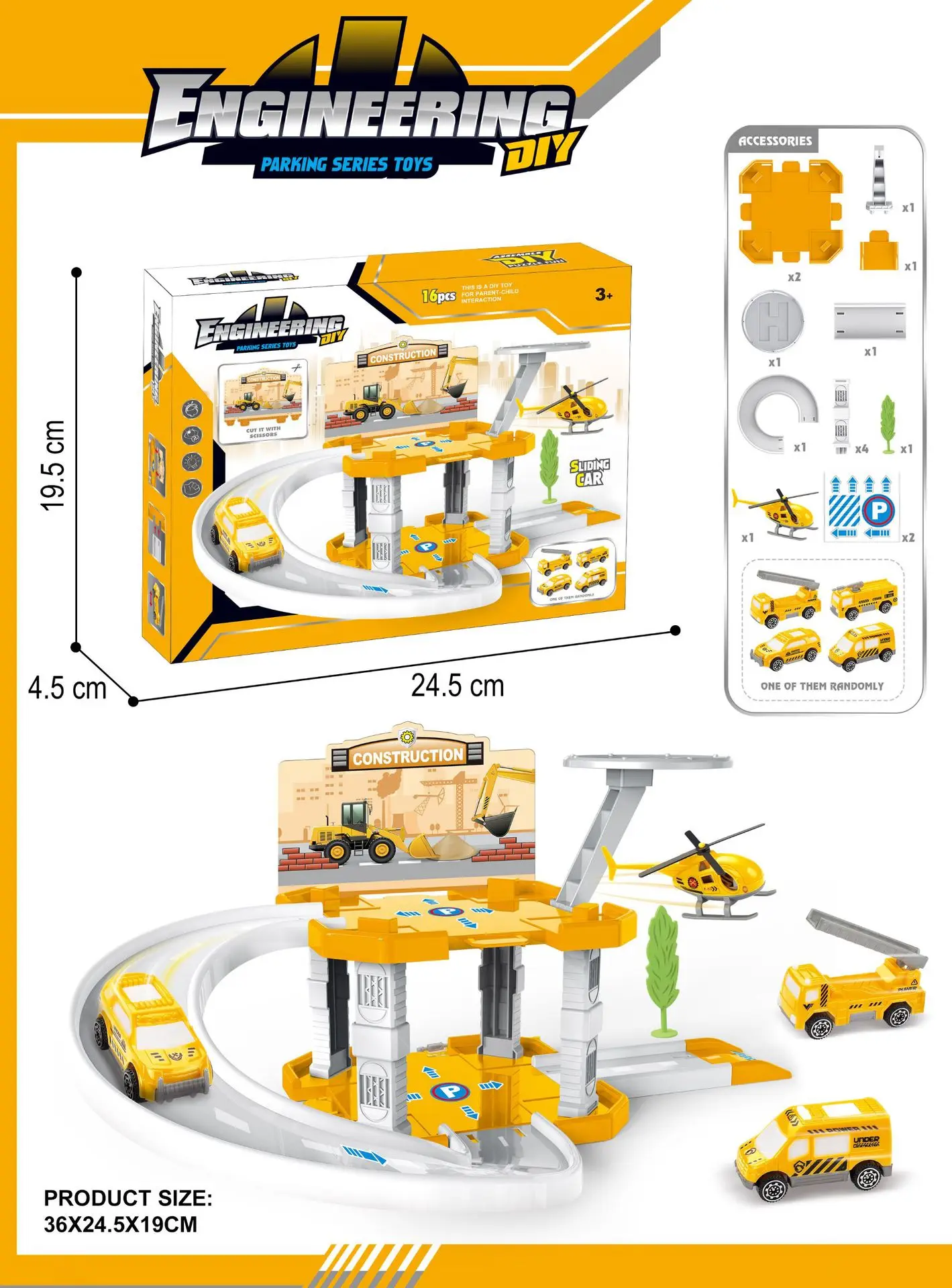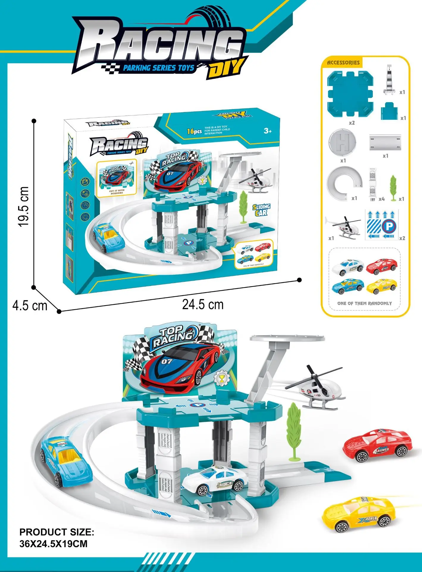مجموعة واحدة من مجموعة ألعاب السيارة المجمعة مع لعبة لغز لعبة تدور بمشهد ذاتي الصنع ، مجموعة ألعاب سيارة السكك الحديدية الشراعية ، لعبة موقف للسيارات ، هدية للأطفال