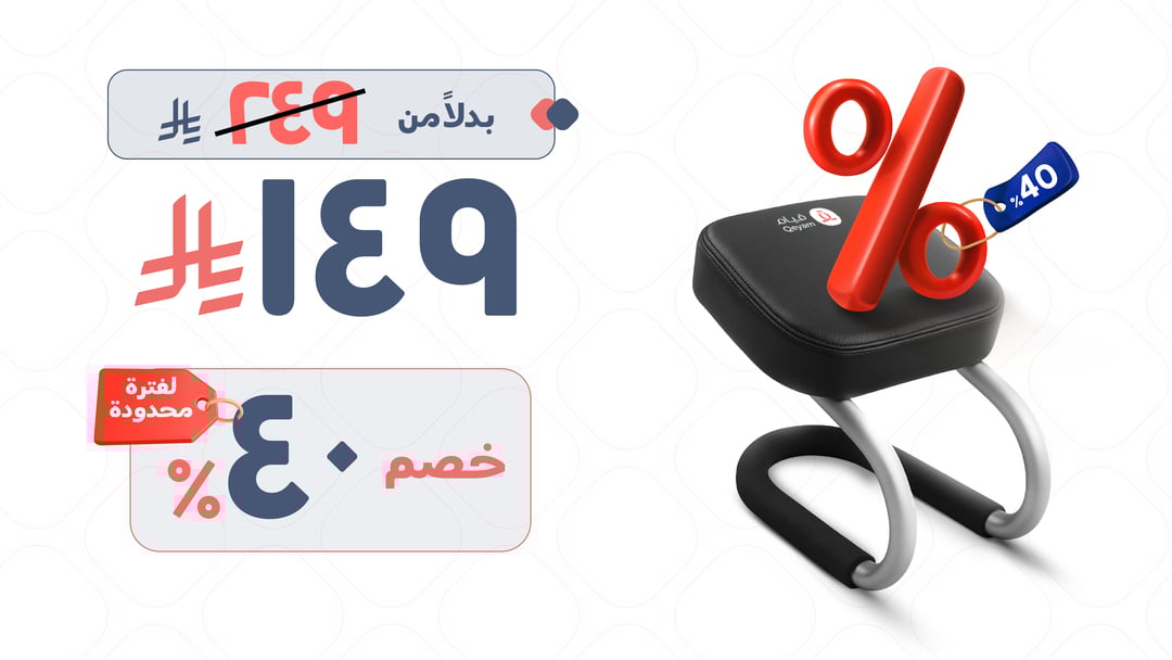 الكرسي لا يحتاج لضبط يدوي للارتفاع، بل يمكنك التحكم بزاوية الجلوس عبر تقديم الكرسي للأمام أو إرجاعه للخلف حتى تجد الزاوية المريحة لثني الركبة.
