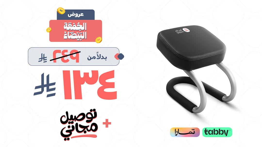 الكرسي لا يحتاج لضبط يدوي للارتفاع، بل يمكنك التحكم بزاوية الجلوس عبر تقديم الكرسي للأمام أو إرجاعه للخلف حتى تجد الزاوية المريحة لثني الركبة.