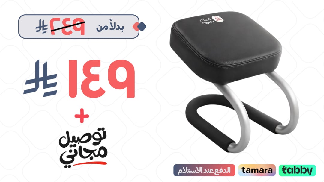الكرسي لا يحتاج لضبط يدوي للارتفاع، بل يمكنك التحكم بزاوية الجلوس عبر تقديم الكرسي للأمام أو إرجاعه للخلف حتى تجد الزاوية المريحة لثني الركبة.