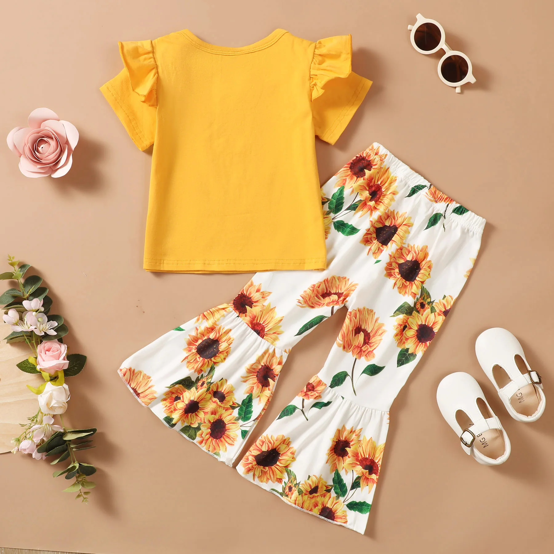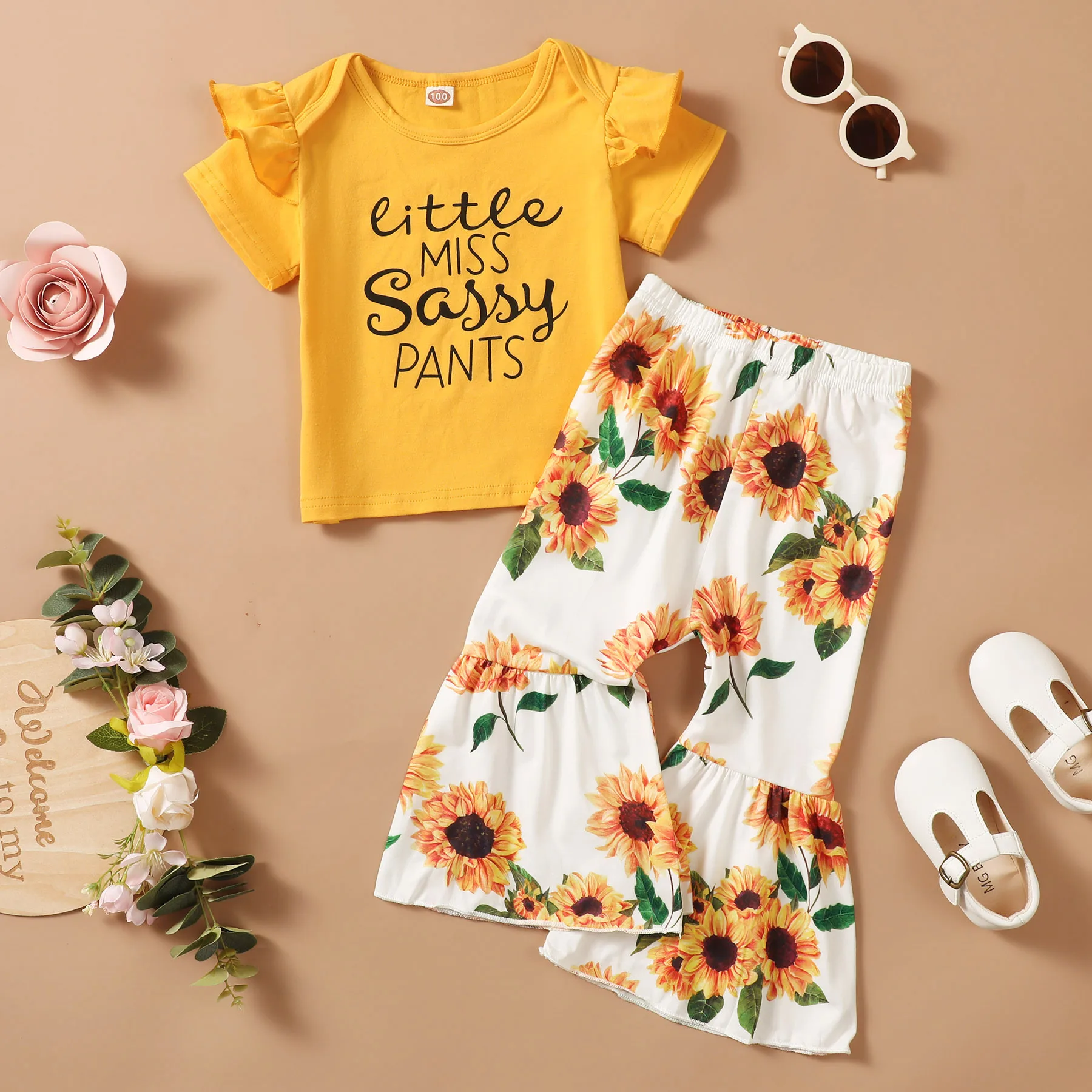 - فتاة صغيرة الملابس مجموعة قصيرة الأكمام أعلى زهرة نمط مضيئة السراويل 2 قطعة الرضع طفل أطقم ملابس للفتيات طفل فتاة الملابس