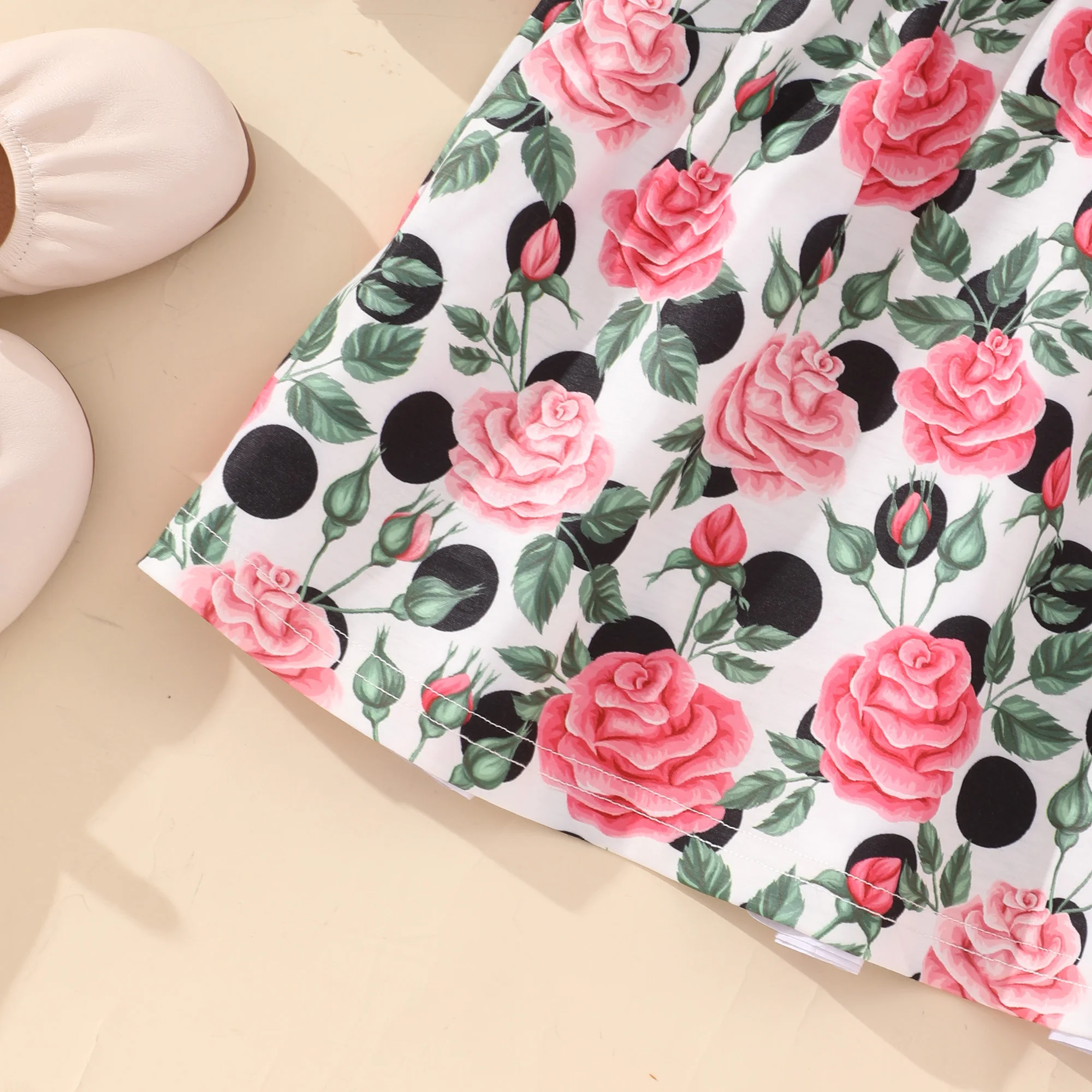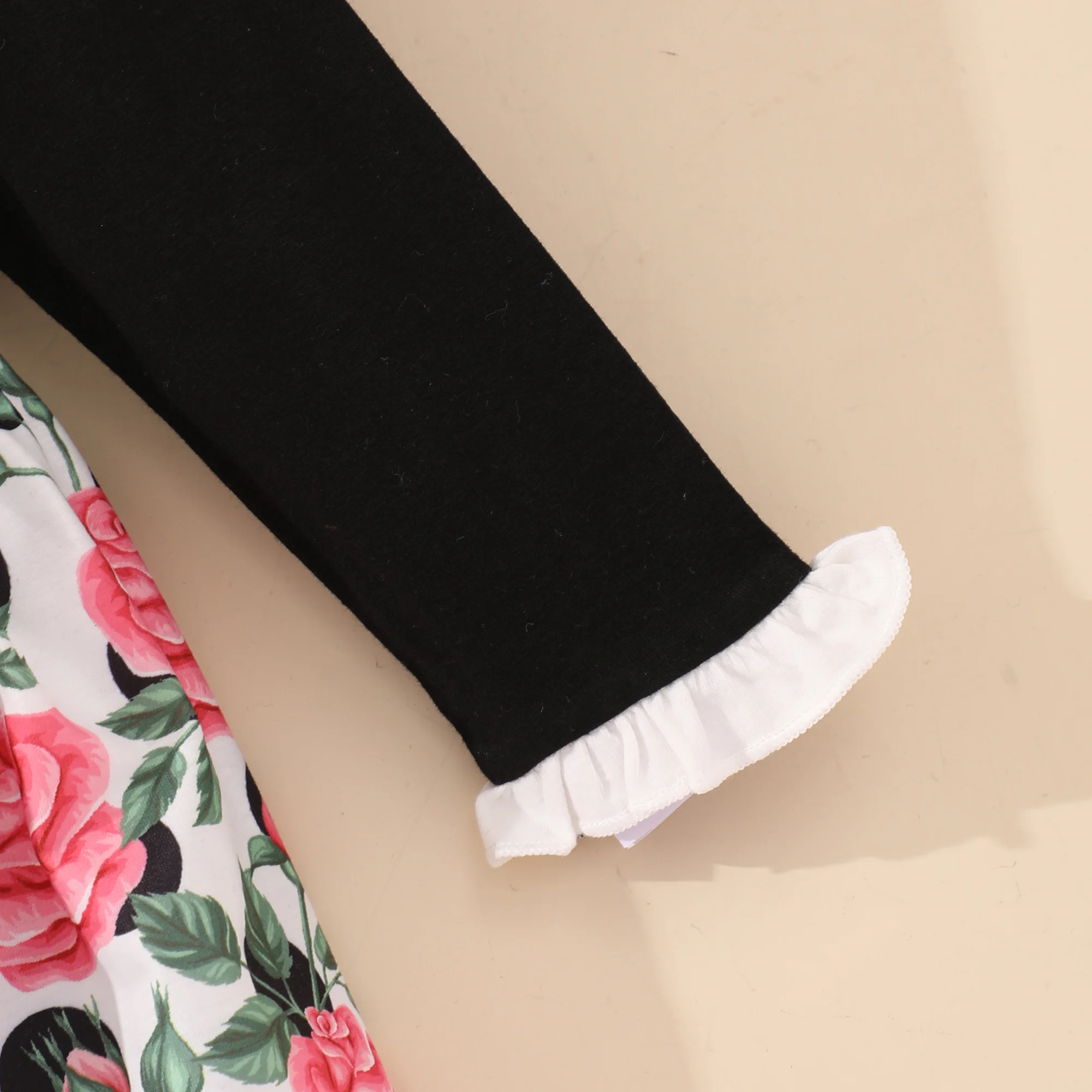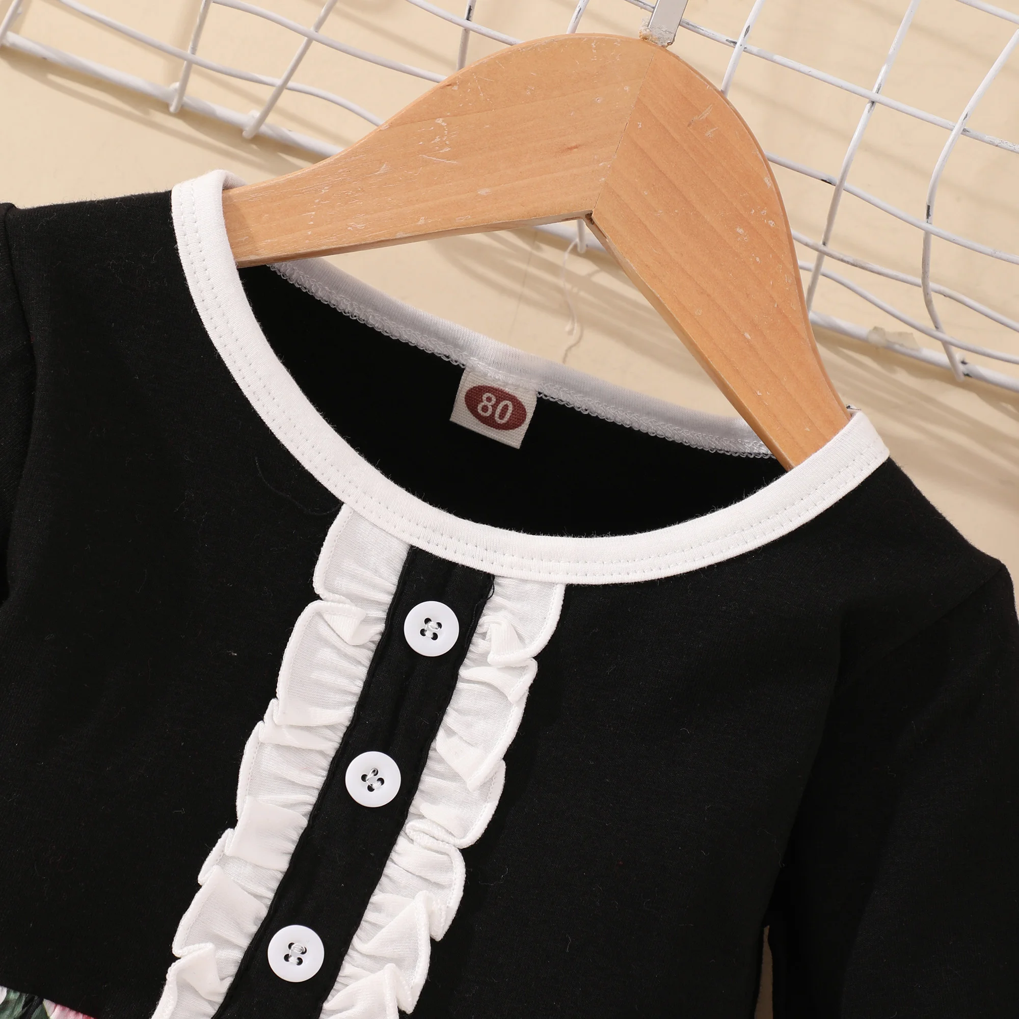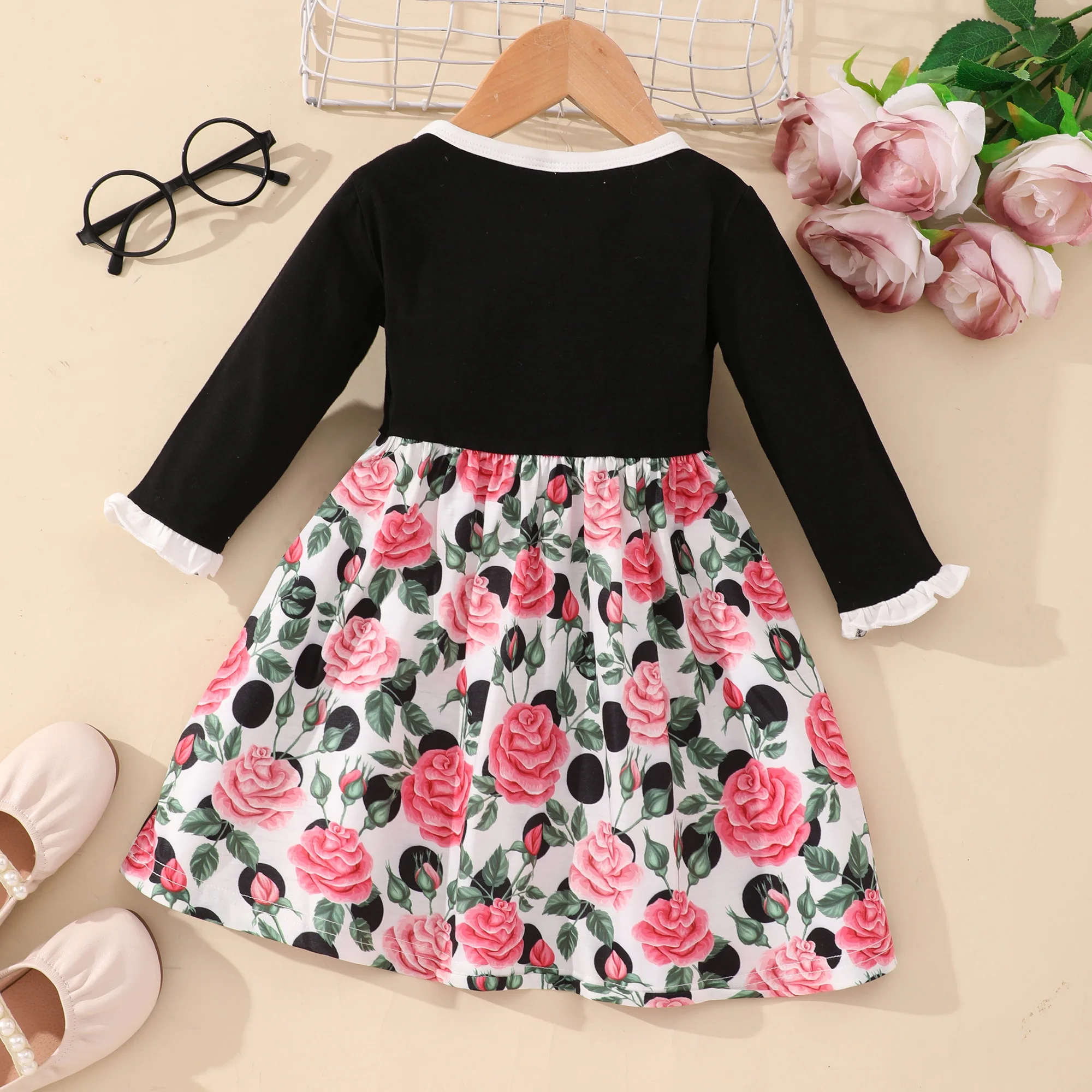 خريف جديد طفلة ملابس الورد زهرة طباعة زر الكشكشة المرقعة كم طويل حفل زفاف الأميرة الاطفال فتاة فستان 1-6y