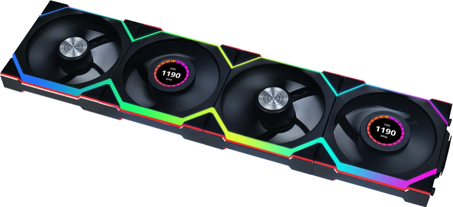 - تتميز سلسلة UNI FAN SL اللاسلكية بمحمل FDB، مما يضمن تشغيلًا عالي السرعة على المدى الطويل بمستوى ضوضاء أقل. يمكن لإصدارات LCD وLED الوصول إلى سرعات مروحة تصل إلى 1900 دورة في الدقيقة و2100 دورة في الدقيقة على التوالي.
