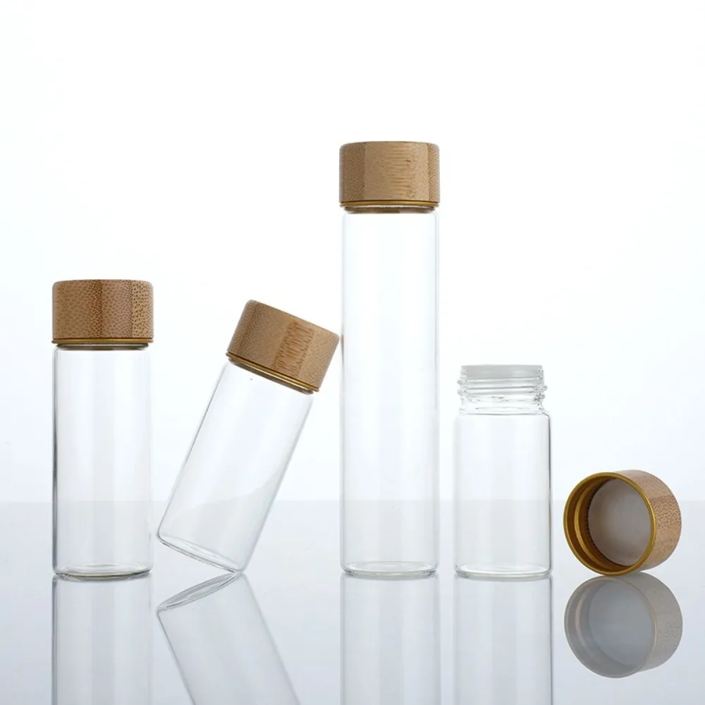 - برطمانات توابل زجاجية شفافة محكمة الغلق بغطاء خيزران ، حاوية قابلة لإعادة الملء ، تخزين طعام ، توزيع ، غلق 12-من من من من الخيرزان