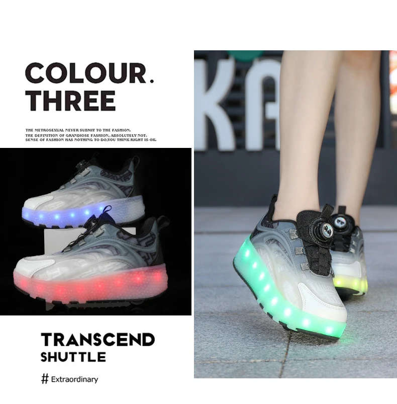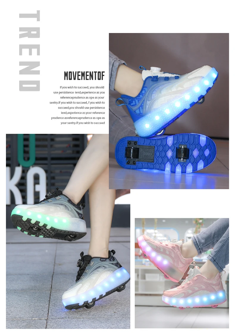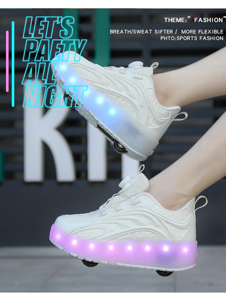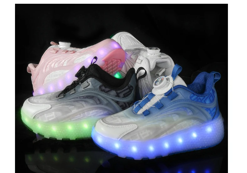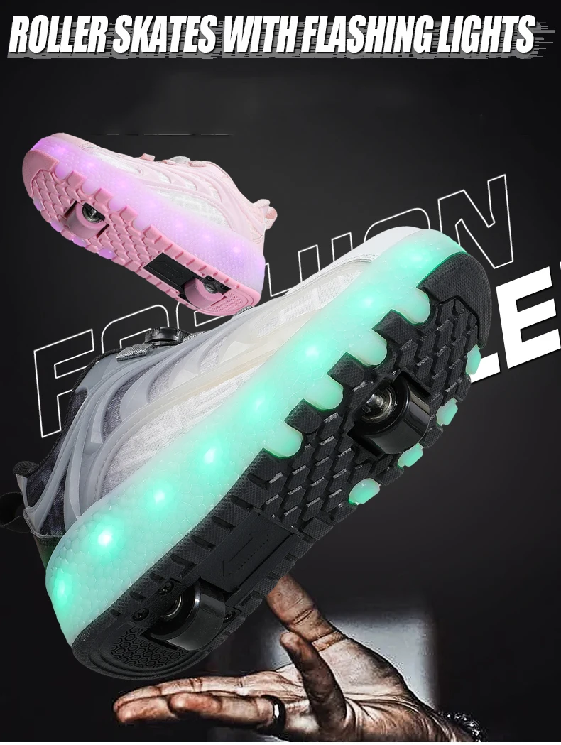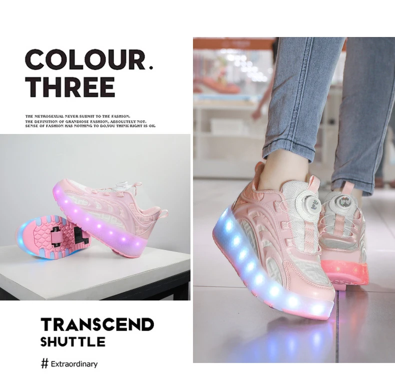 أحذية التزلج الدوارة مع ضوء LED للأطفال ، أحذية رياضية الوردي للأطفال والفتيات والفتيان ، عجلتين ، الموضة