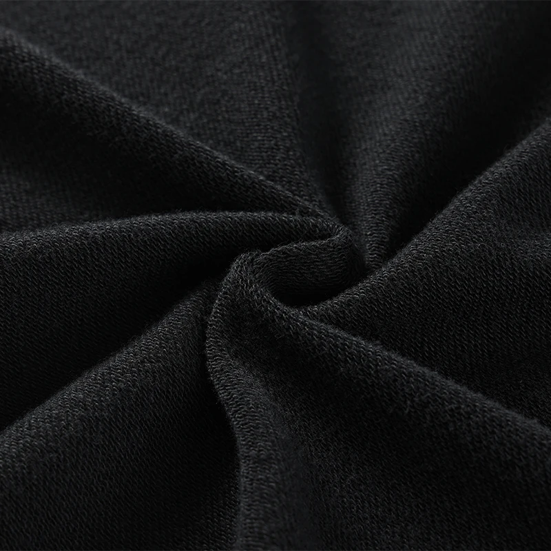 بلوفر أسود قطن غير مبطن وغير ثقيل مريح، مع إمكانية الطباعة على حسب طلبك في المكان المخصص.