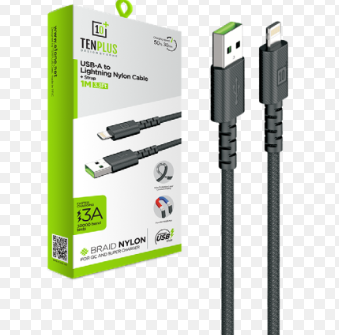 كيبل شحن سريع من USB-A إلي لايتيننق حزام نايلون مضفر بطول 1 متر (3.3 قدم) أسود بقوة 3A