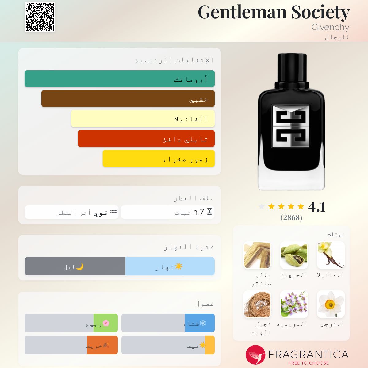 عبّر عن نفسك بقوة مع عطر جيفنشي جنتلمان او دو بيرفيوم الزهري-الخُشبي-العطري الذي يمزج بين المريمية الطازجة والنرجس البري مع الجاذبية العميقة للفيتيفير، خشب الأرز، وصندل كريمي. لمسة من الفانيليا تضيف أثرًا حسيًا لا يُنسى. محاط في زجاجة سوداء لافتة مزخرفة بشعار جيڤنشي الفضي المميز، يعيد هذا العطر تعريف الأناقة للرجال العصريين. انضم إلى عالم جنتلمان سوسايتي. إنه أكثر من مجرد مكان، بل طريقة تفكير.