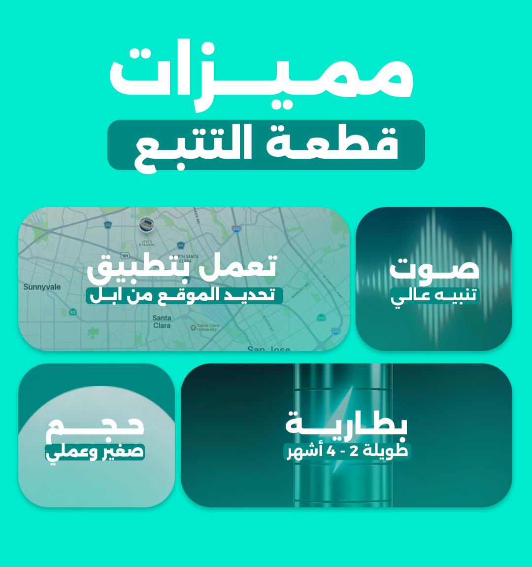 القطعة تعمل بخاصية تتبع الموقع المخصصة لمنتجات ابل ( يشترط وجود اجهزة ايفون متصلة بالشبكة و يعمل فيها البلوتوث قرب القطة لتحديد الموقع)