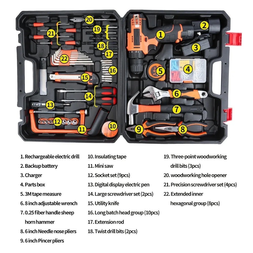 - شنطة معدات متكاملة مجموعة دريل وادوات يدوية متعددة الاستخدامات في المنزل والمكتب مكون من 55 قطعة من دينكس لون أصفر173.04
