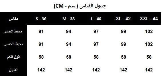 يغسل ويكوى بالبخار بدرجة حرارة منخفضة 40 درجة مئوية، ويُجفف بالتعليق