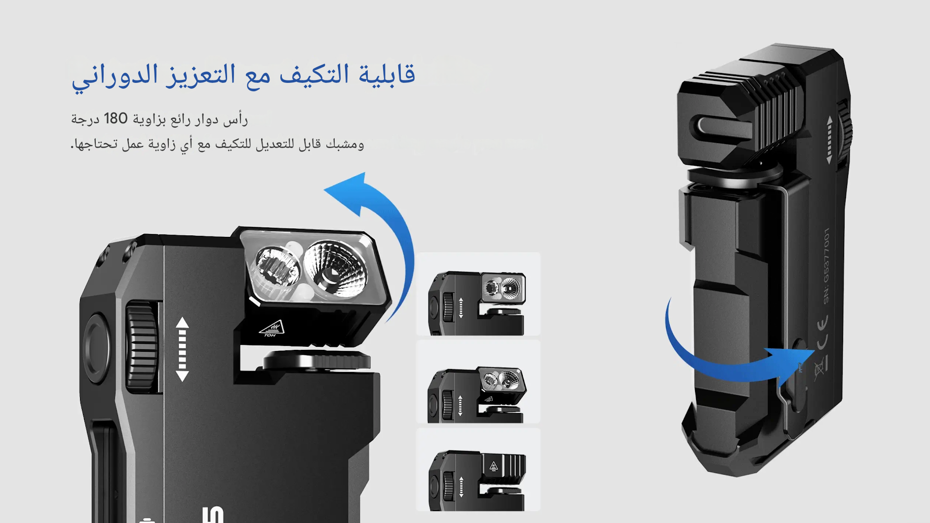 رأس قابل للدوران بزاوية 180 درجة مع مشبك قابل للتعديل لتوفير راحة الاستخدام بدون استخدام اليدين.