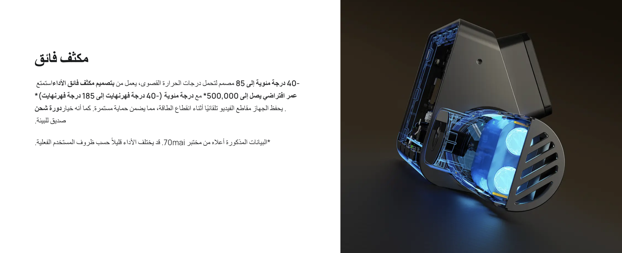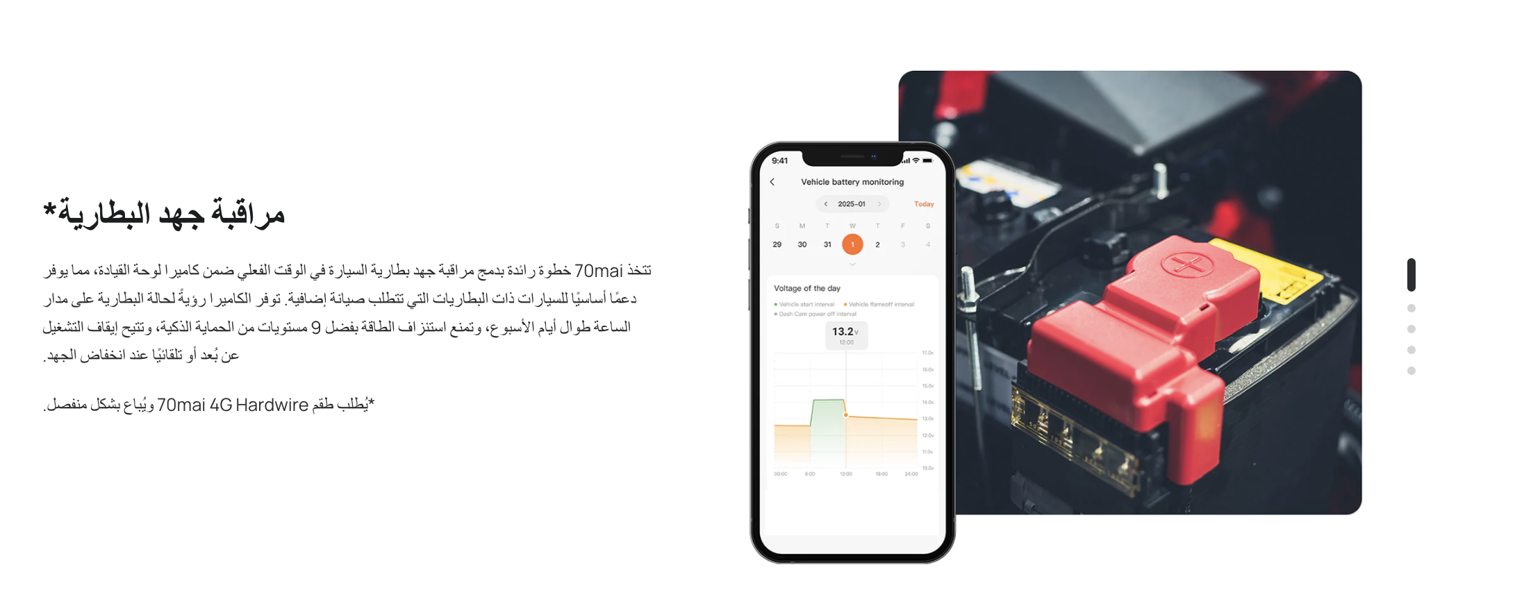 - نقدم لكم حزمة بطاريات 70mai، مصدر طاقة خارجي قوي يُبقي كاميرا سيارتك قيد التشغيل حتى عند إيقاف تشغيل المحرك. تُخزّن الطاقة أثناء القيادة وتُشغّل كاميرا سيارتك بسلاسة أثناء وضع الركن، مما يضمن حماية أطول دون المساس بصحة بطارية سيارتك