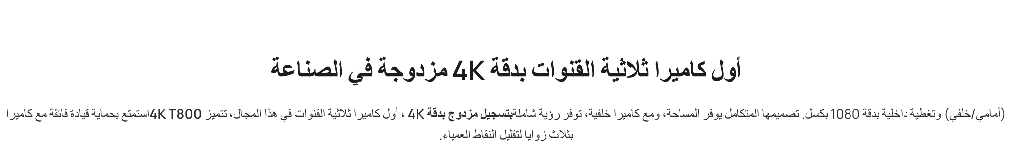 - يحتوي على مكثف فائق حتى في ظل الظروف الجوية القاسية، تحافظ كاميرا 4K T800 على ثباتها. يُواصل المُكثِّف الفائق المدمج التسجيل بكفاءة عالية خلال موجات الحر والبرد القارس.