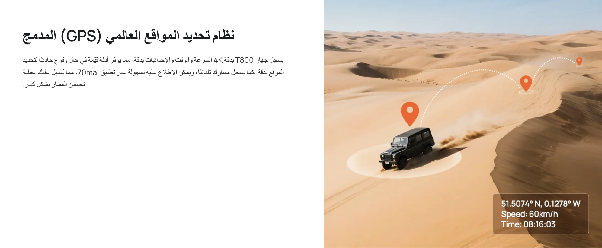 - يدعم نظام تحديد المواقع العالمي بدقة فائقة لتحديد مسارك، وتتبع طريقك.